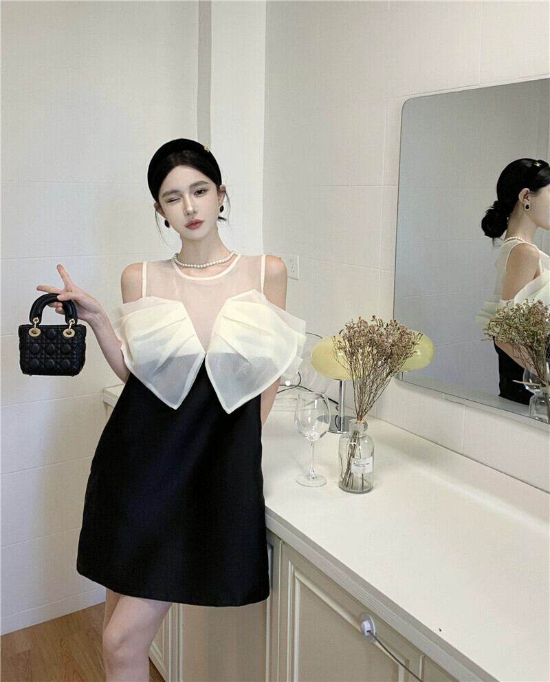 カラーマッチングノースリーブベストドレス女性の夏のニッチデザインセンスフランスの優しい気質のセレブの小さなスカート サマー 夏物 857164046326645