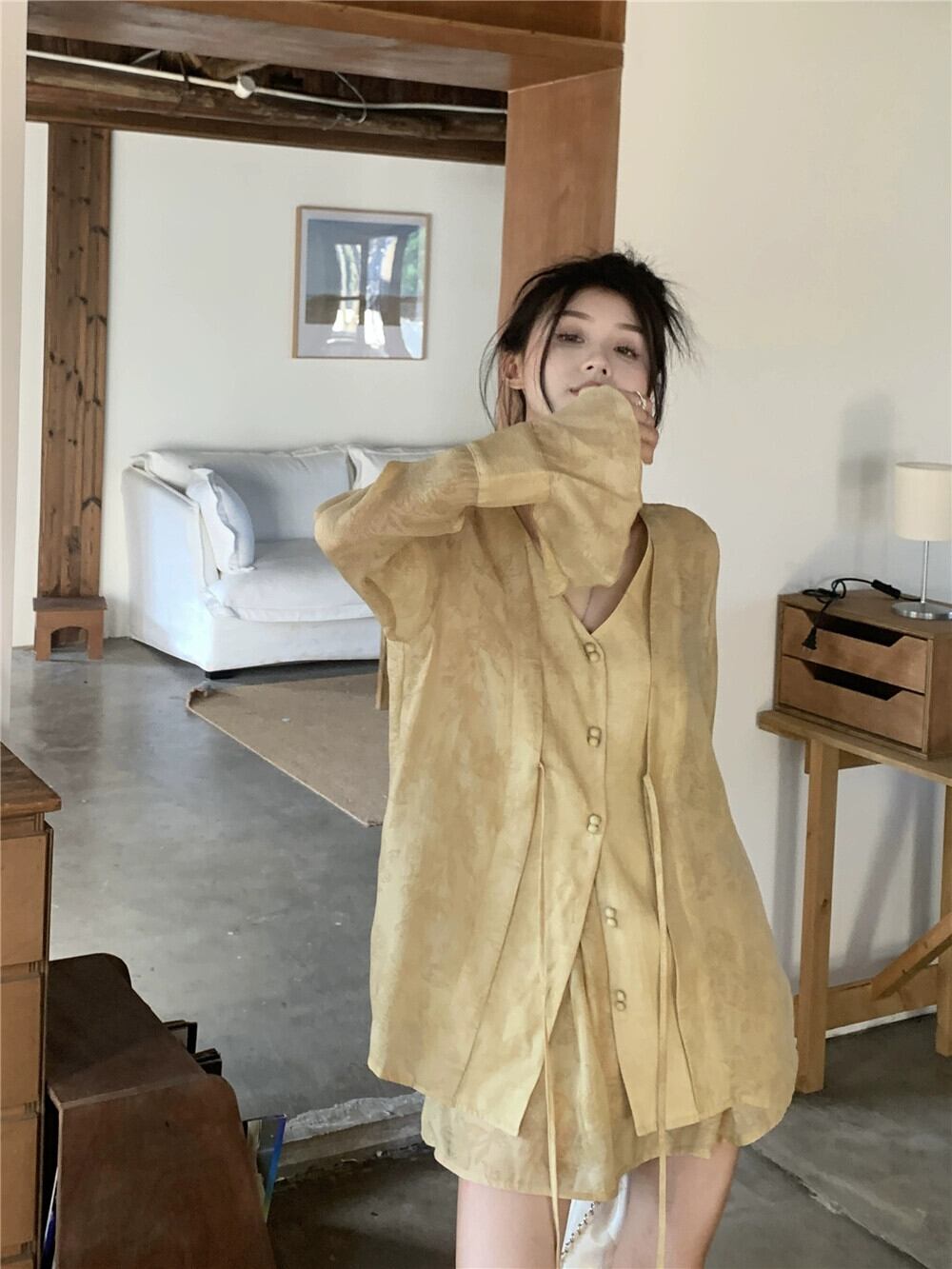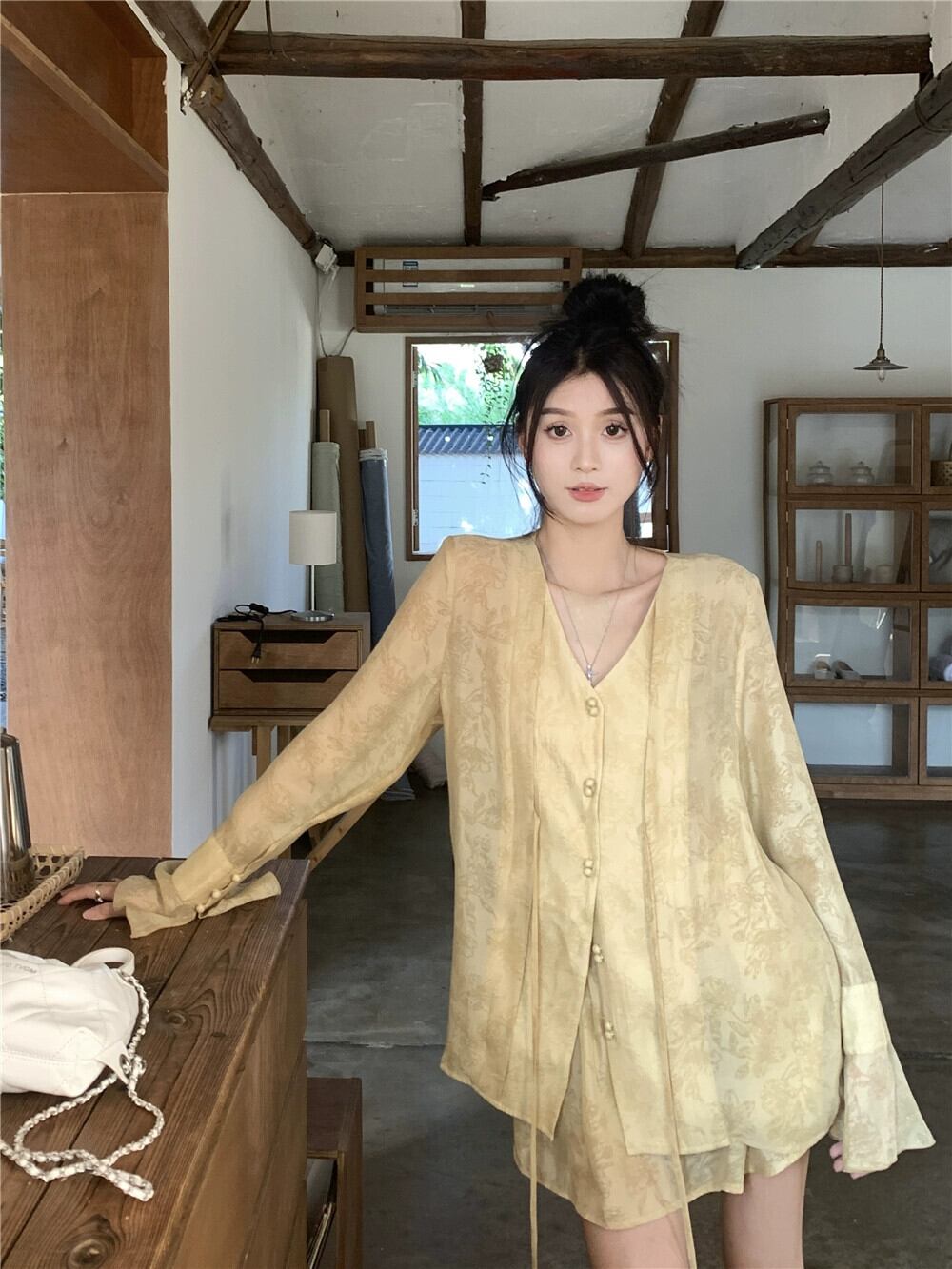 中国風国民風 V ネックトップ女性の夏の気質ハイエンドデザインセンスニッチ超素敵なシフォン日焼け止めシャツ サマー 夏物 Vネック 857169381310167