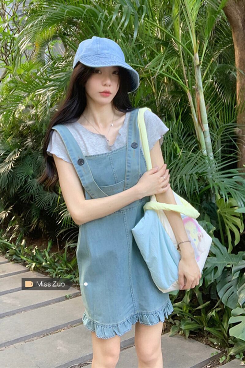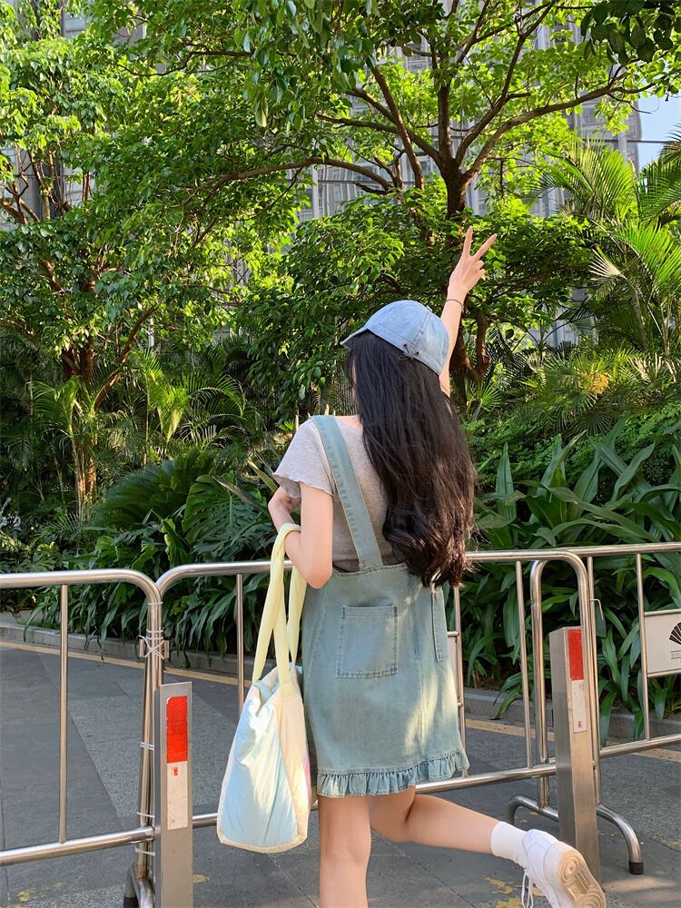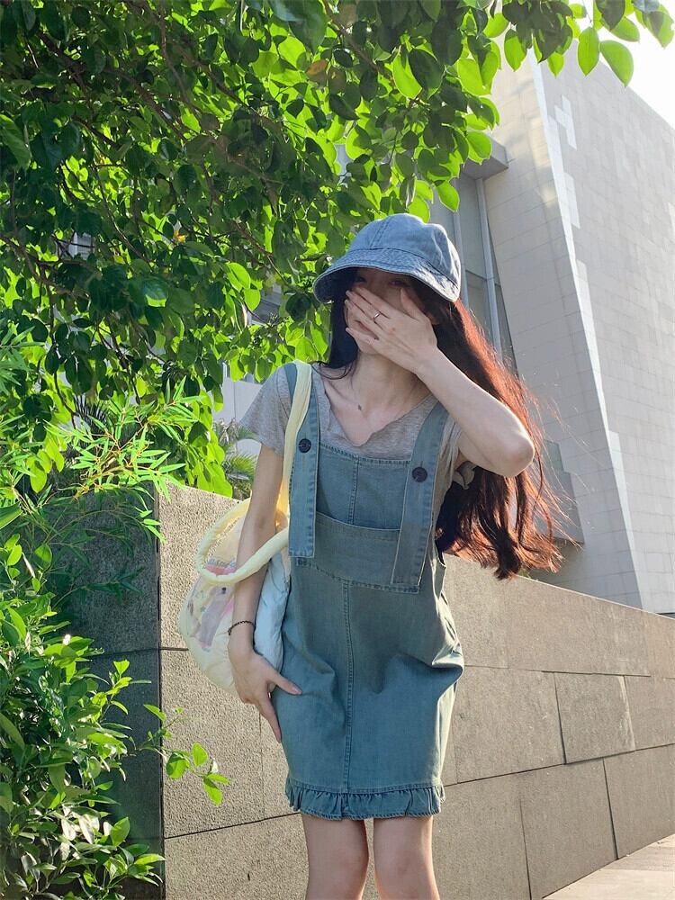 デニムストラップスカートドレス女性の夏 2023 新しい香港スタイルのレトロシックな小さなフリルショートスカート サマー 夏物 8571639261043295