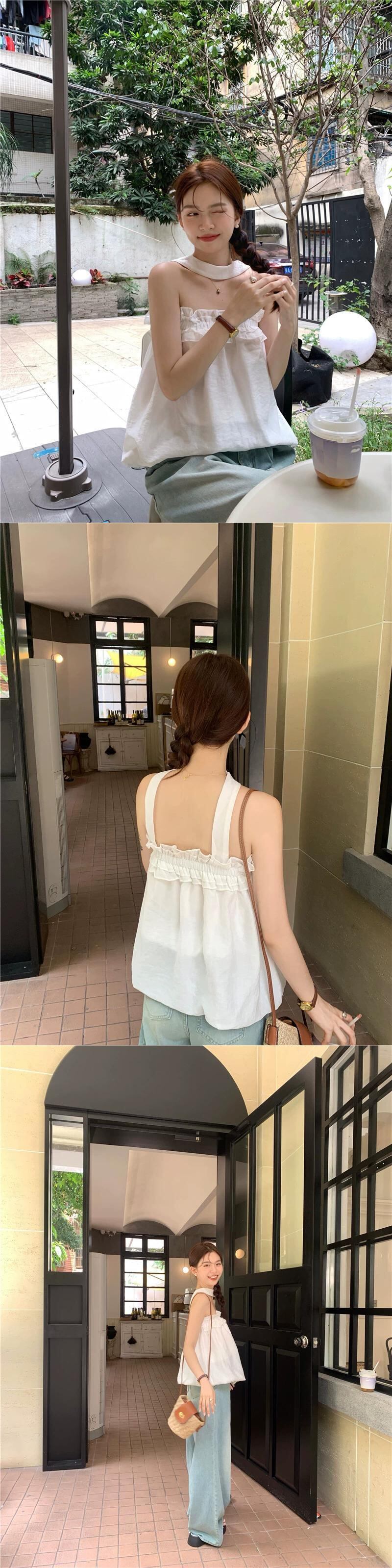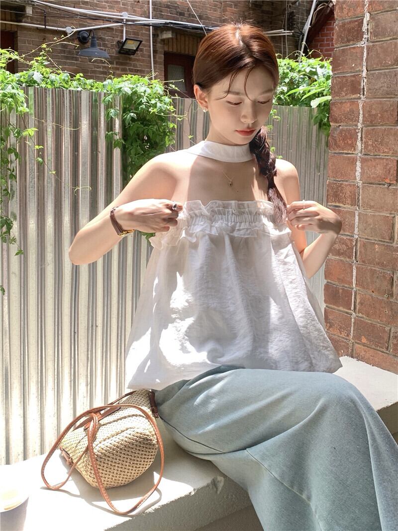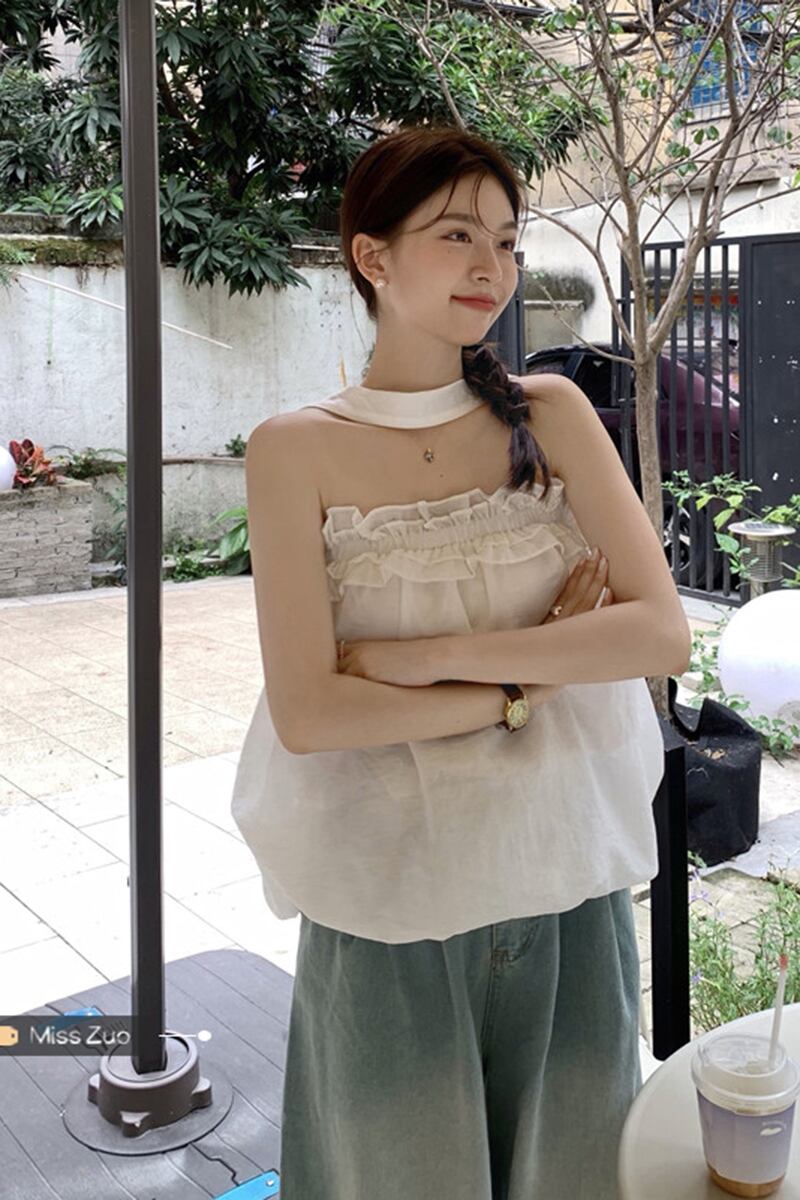 ホワイト 吊りネック キャミソール レディース アウター 夏 デザインセンス ニッチ フレンチ スイート&シック シフォン チューブトップ トップス 大人ガーリー スウィート キュート カジュアル サマー 夏物 8571622995645464