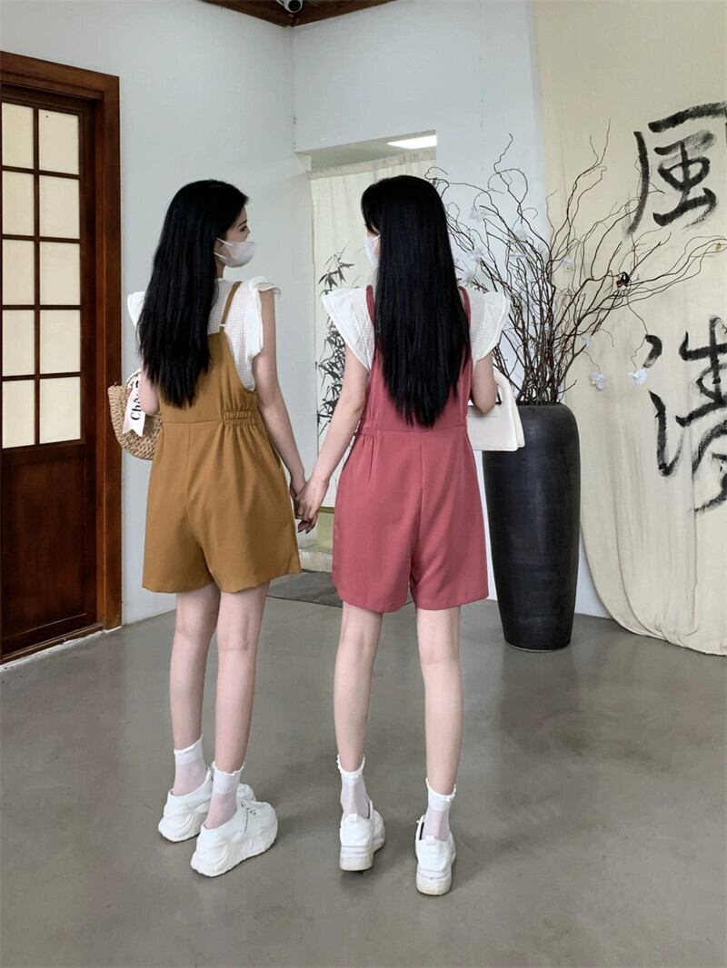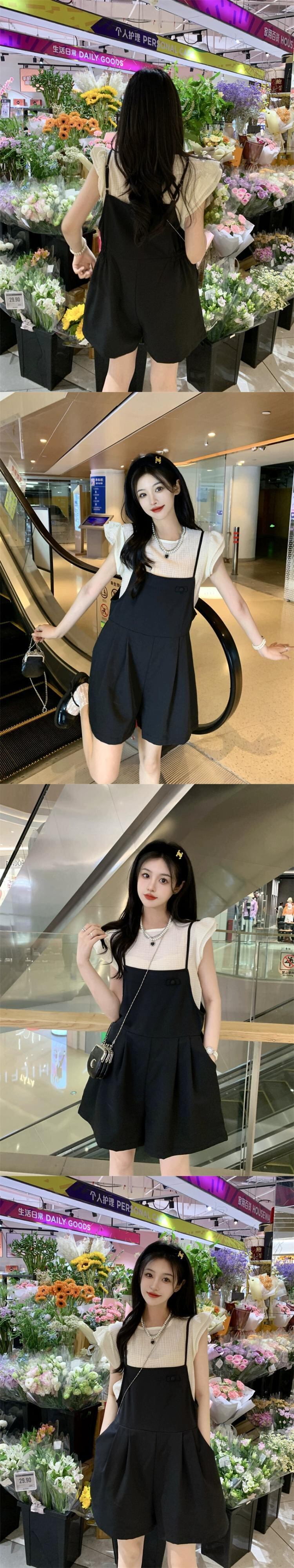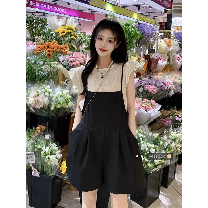 黒サスペンダーショーツレディース2023年夏新デザインセンスニッチアインスタイル年齢軽減サスペンダーワイドレッグパンツスーツ ブラック サマー 夏物 ブルマー 8571652781656240