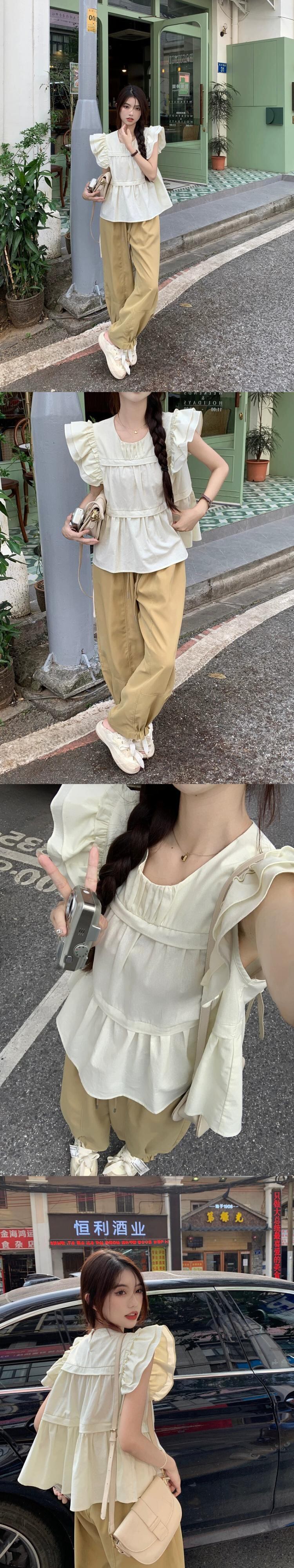 赤いフライングスリーブシャツ女性のデザインセンスニッチシャツ夏2023新しいeignスタイル年齢を減らすノースリーブトップ レッド サマー 夏物 8571648507594569