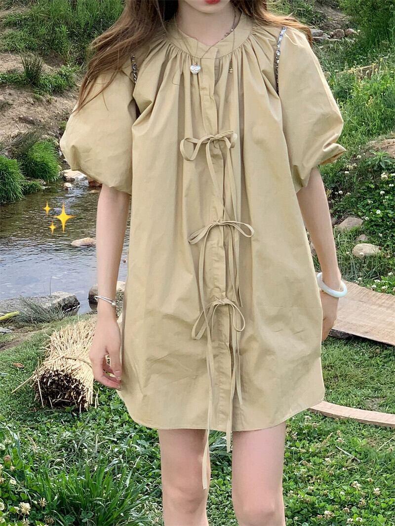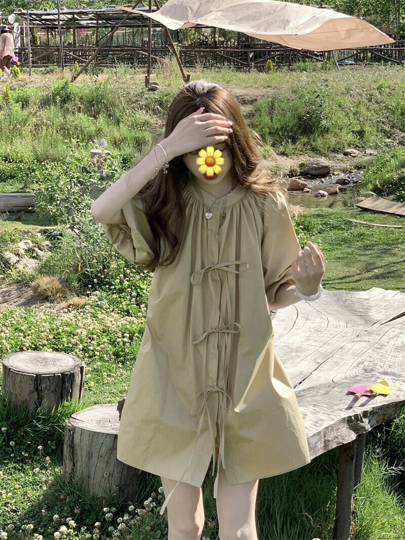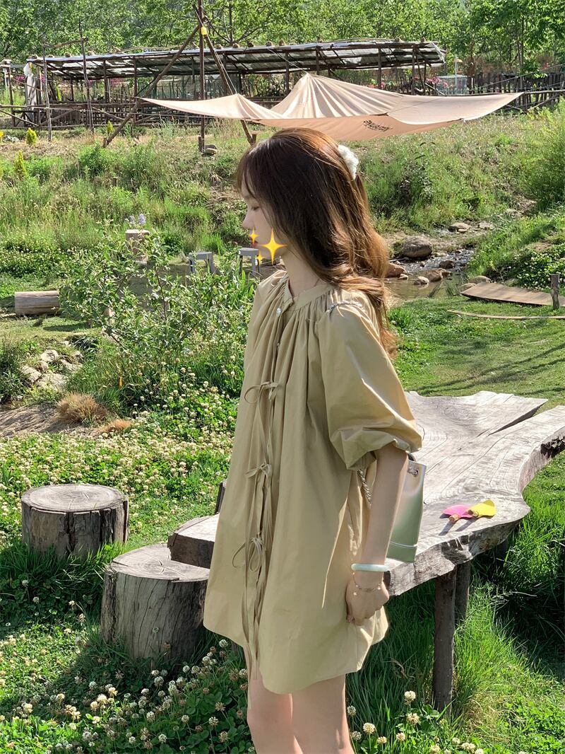 カーキドレスの女性の 2023 夏の新しいデザインセンスニッチ小さな気質休日風スカート サマー 夏物 8571669404207169