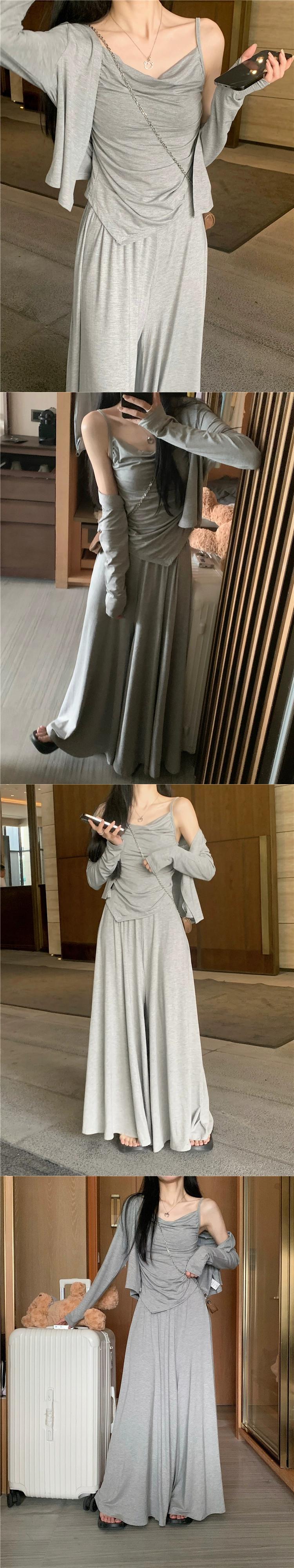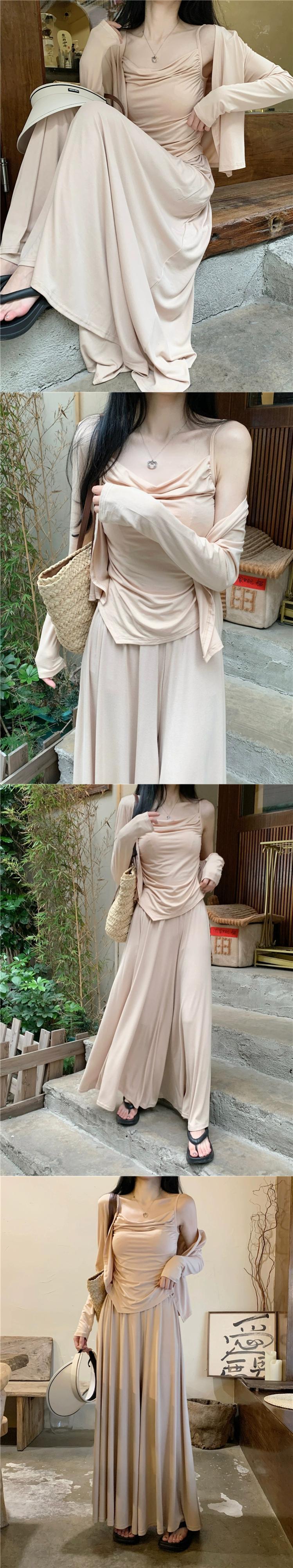 オートミールカラー袴女性の夏のハイウエストドレープフロアモップワイドレッグパンツ 2023 新しいスタイルルーズカジュアルロングパンツ ハイウェスト サマー 夏物 ワイドパンツ 8571638338427791