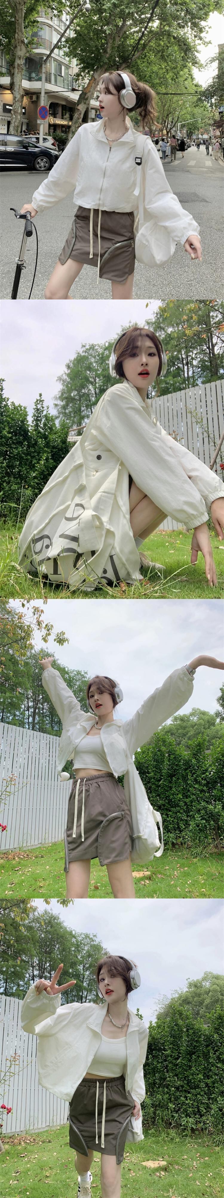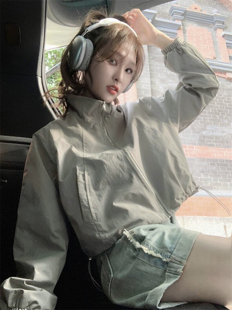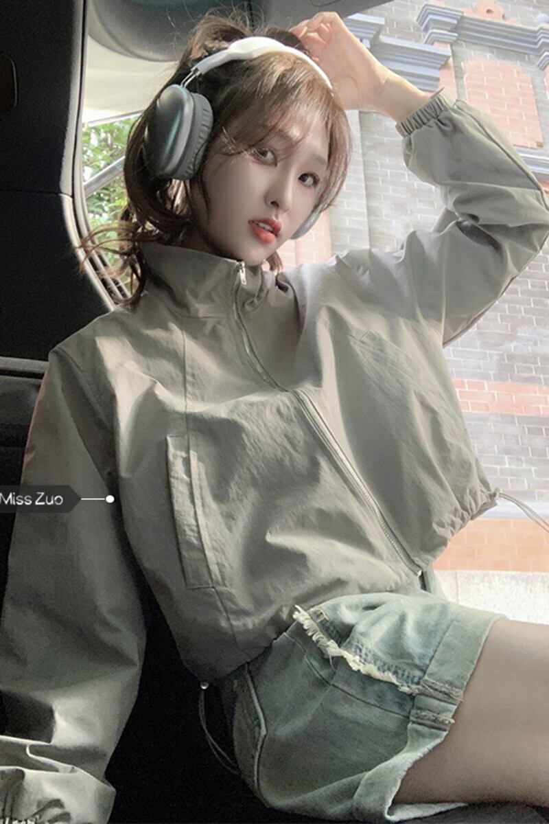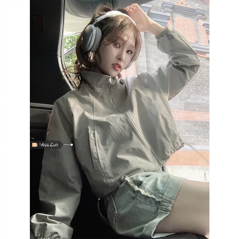 グレー日焼け防止服ジッパージャケット女性の夏 2023 新しい小さなオールマッチカジュアルスポーツショートトップ サマー 夏物 8571613207623182