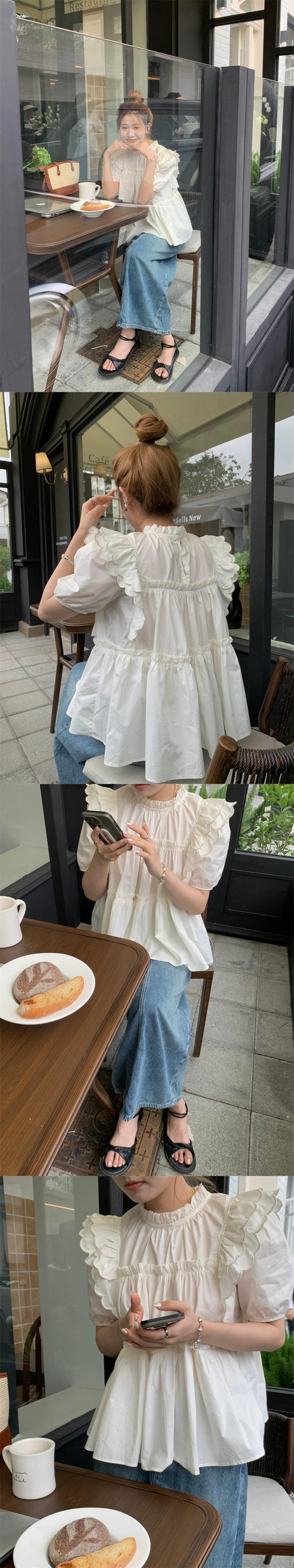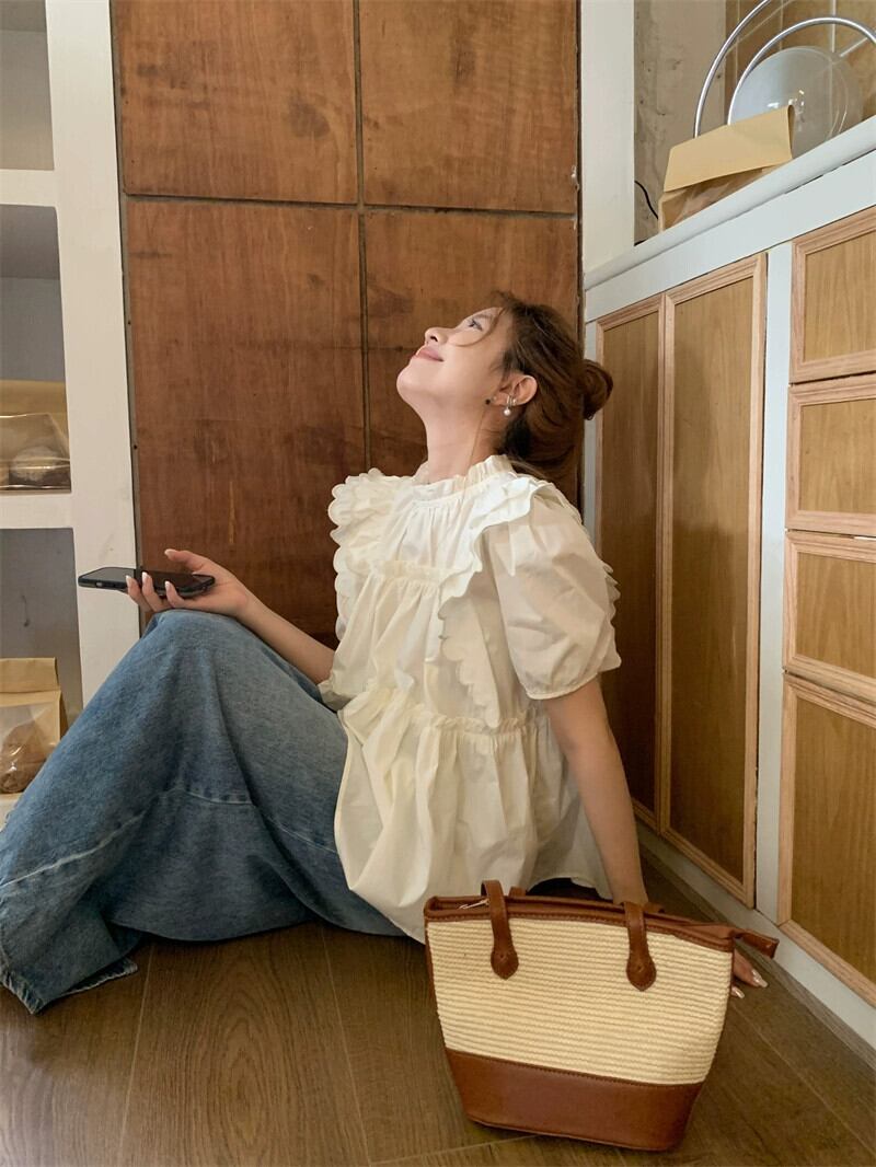 ドールシャツトップ女性の夏のデザインセンスニッチ2023新しい甘いカバーベリーホワイトバブル半袖シャツ 大人ガーリー スウィート キュート カジュアル サマー 夏物 8571624928525303