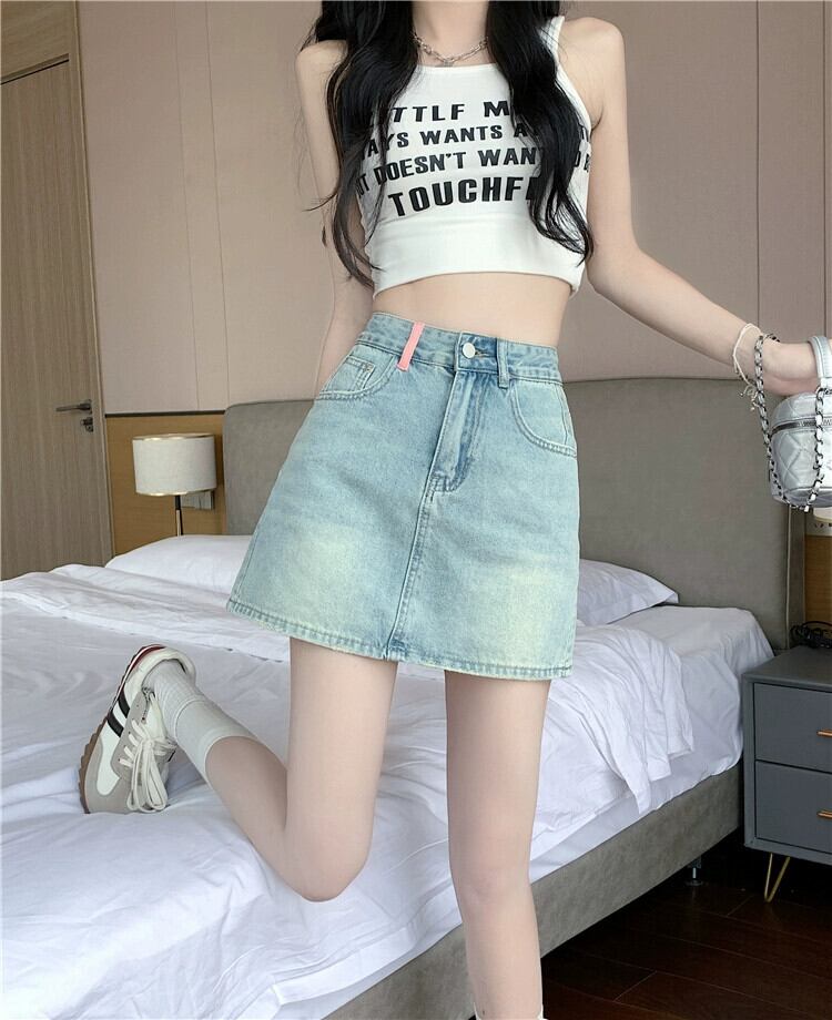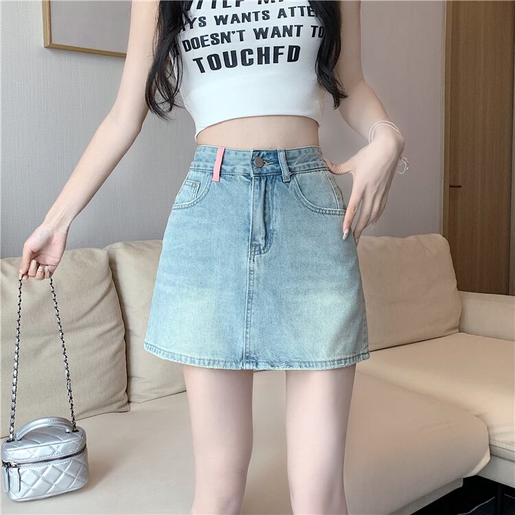 デニムスカート女性のデザインセンスニッチ夏 2023 新しいハイウエスト薄い A ラインスカートバッグヒップスカート ハイウェスト サマー 夏物 Aライン 857167255570722