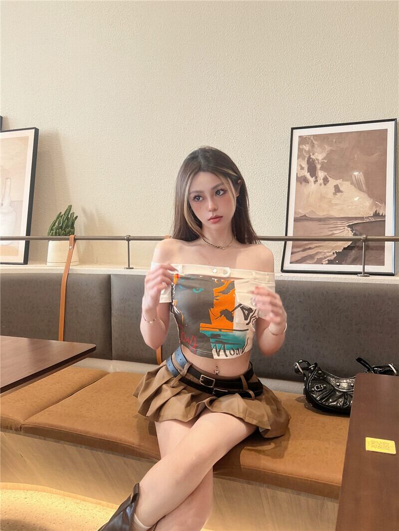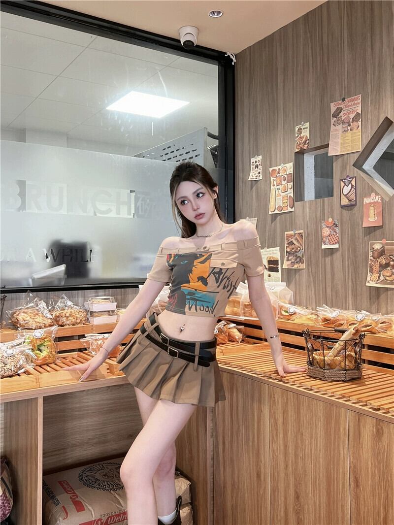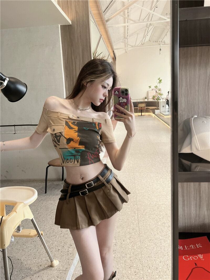 白いワンショルダーショートトップ女性小さな夏アメリカンハイウエスト露出へそスリム半袖Tシャツ ハイウェスト ホワイト サマー 夏物 857162210400902