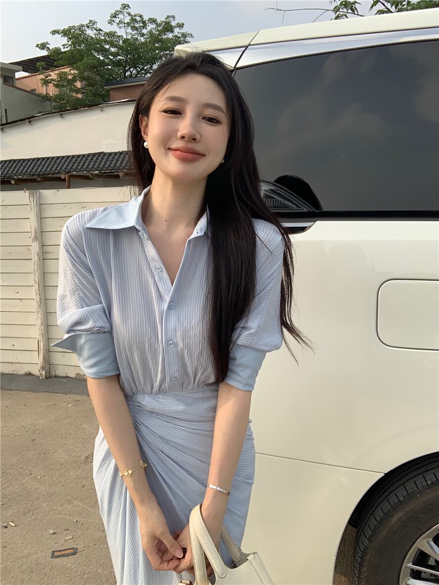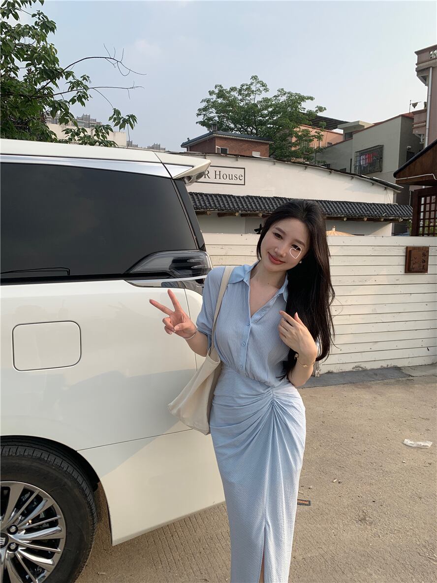 シャツスカートドレスレディース2023春新デザインセンスニッチフレンチ気質スリムウエストスリットスカート スプリング 春物 8571644968793403
