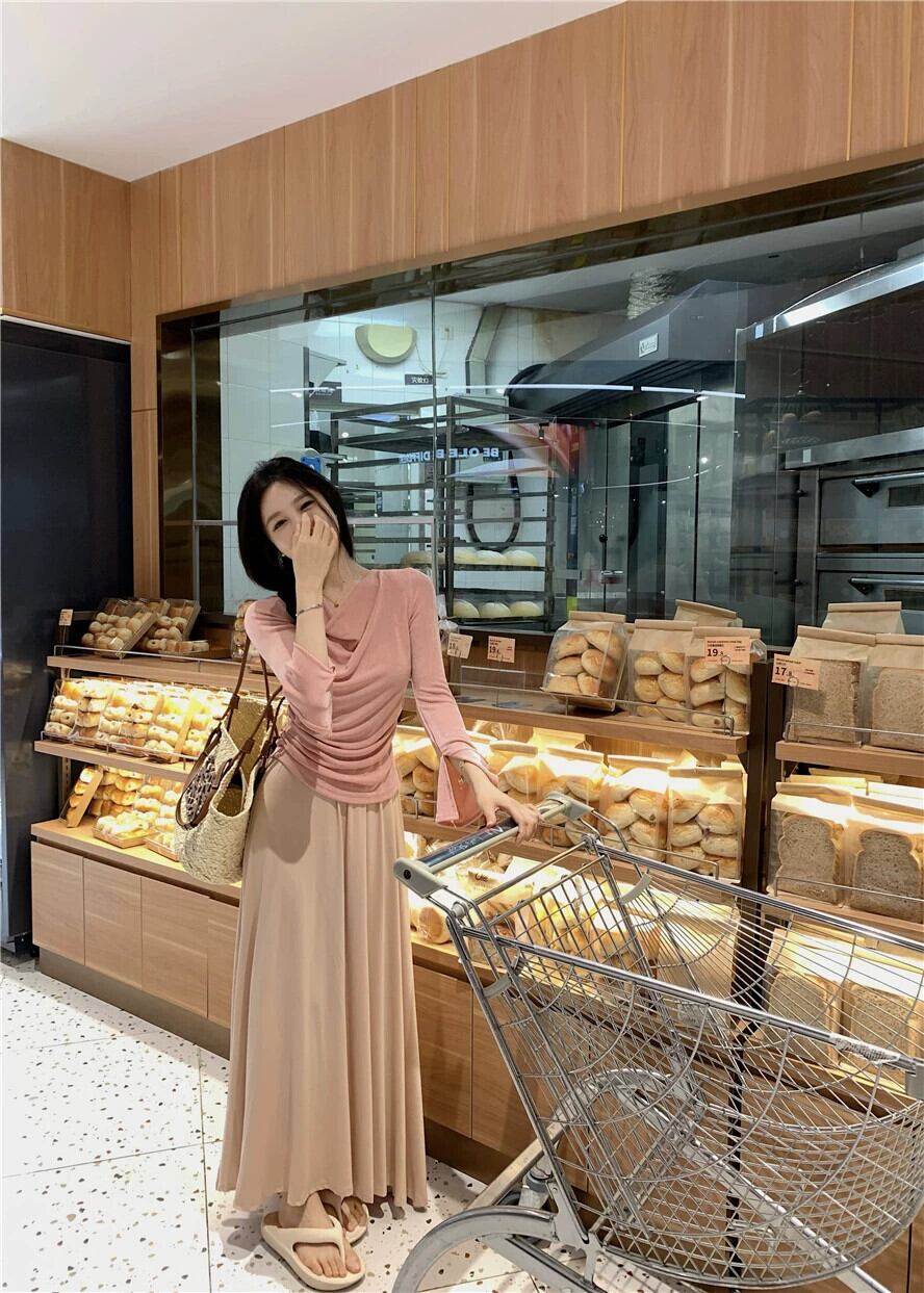 ピンク日焼け止め長袖 Tシャツレディース夏デザインセンスニッチ 2023 新しい人気の美しいスリムスイングカラートップ ロング サマー 夏物 857164315024209