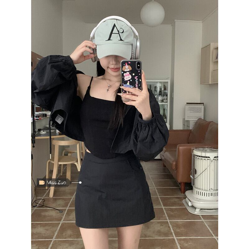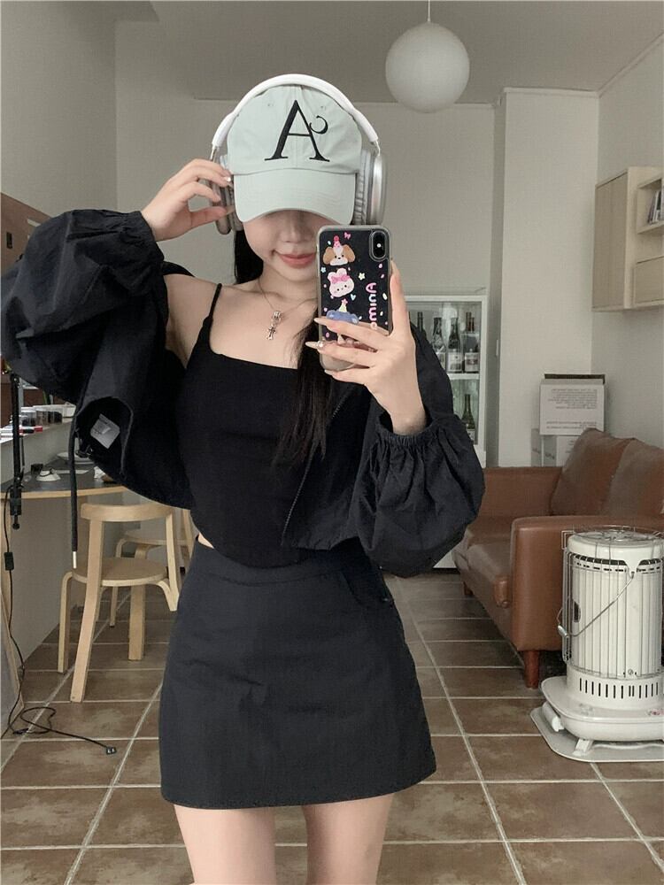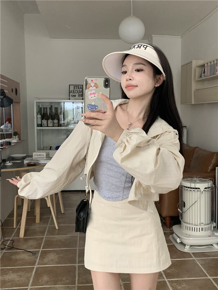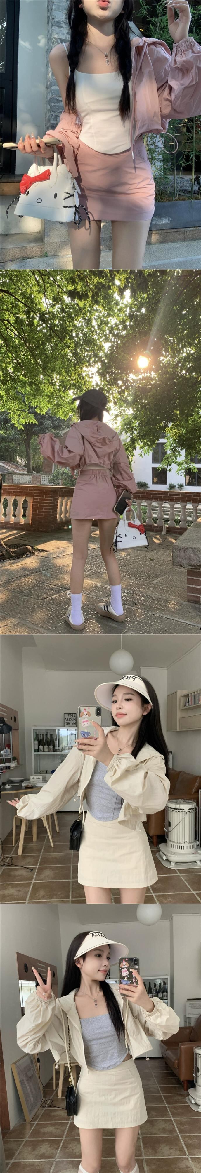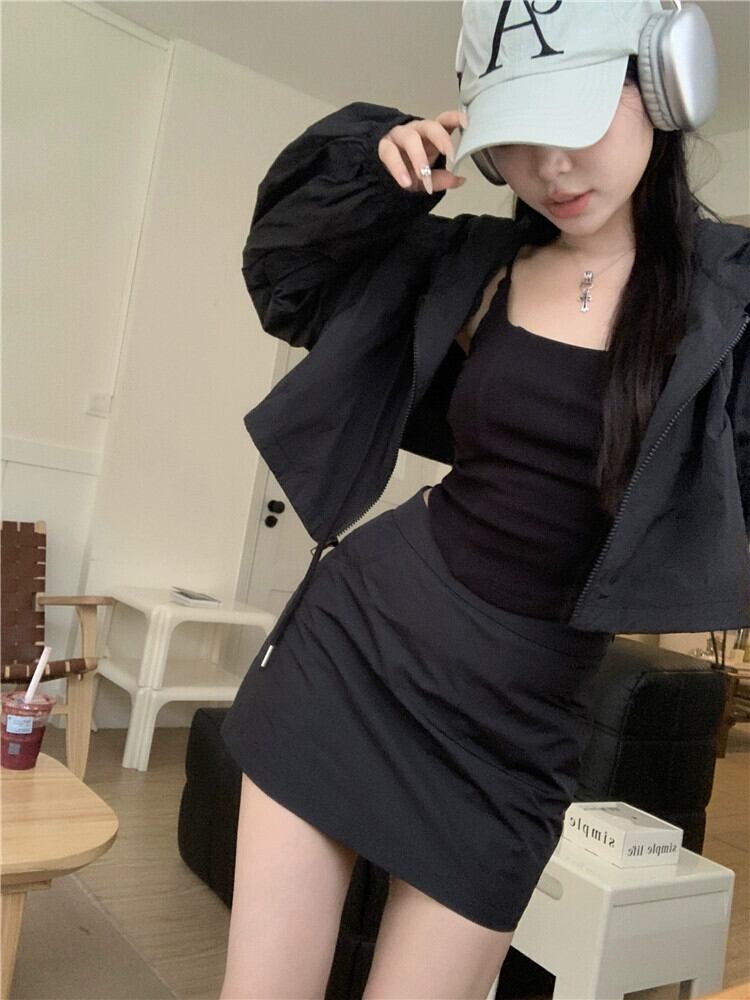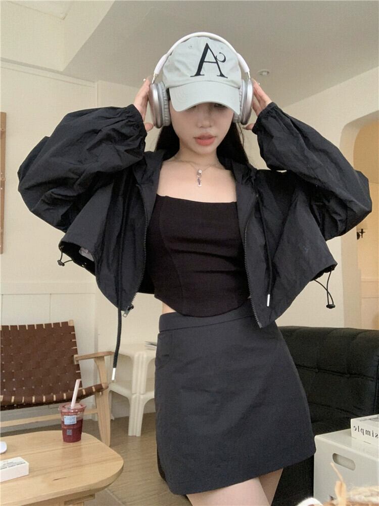黒日焼け止めジャケット女性の夏の 2023 新しいファッション西洋スタイルの小さなフード付きショートトップ ブラック サマー 夏物 8571690060051243