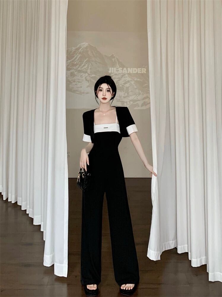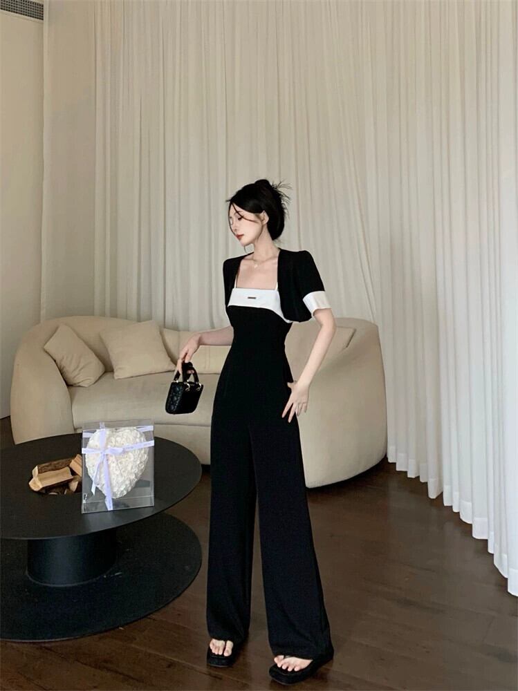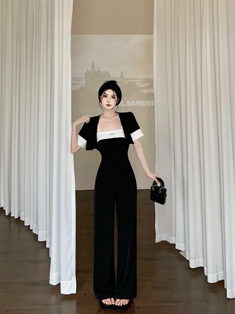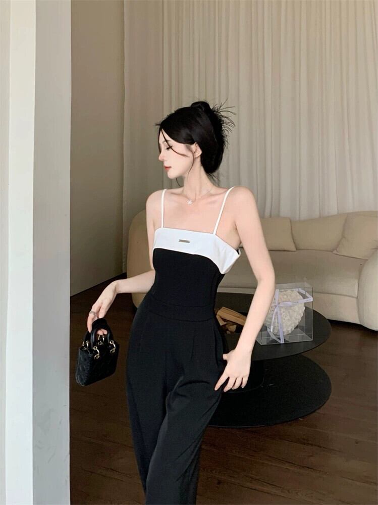 黒スリングジャンプスーツ女性の夏のハイエンドセンスジャンプスーツスーツ 2023 新しい気質女神ファンジャンプスーツ ブラック サマー 夏物 8571655958222504