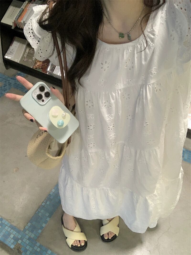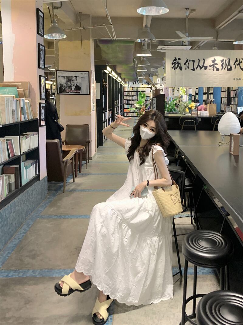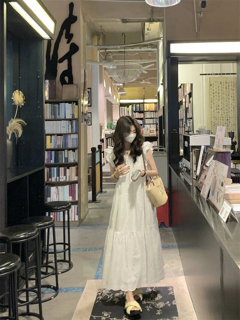 Feifei スリーブホワイトドレス女性の夏 2023 新しいニッチデザインセンス優しい風ルーズ妖精ロングスカート サマー 夏物 8571618962178318