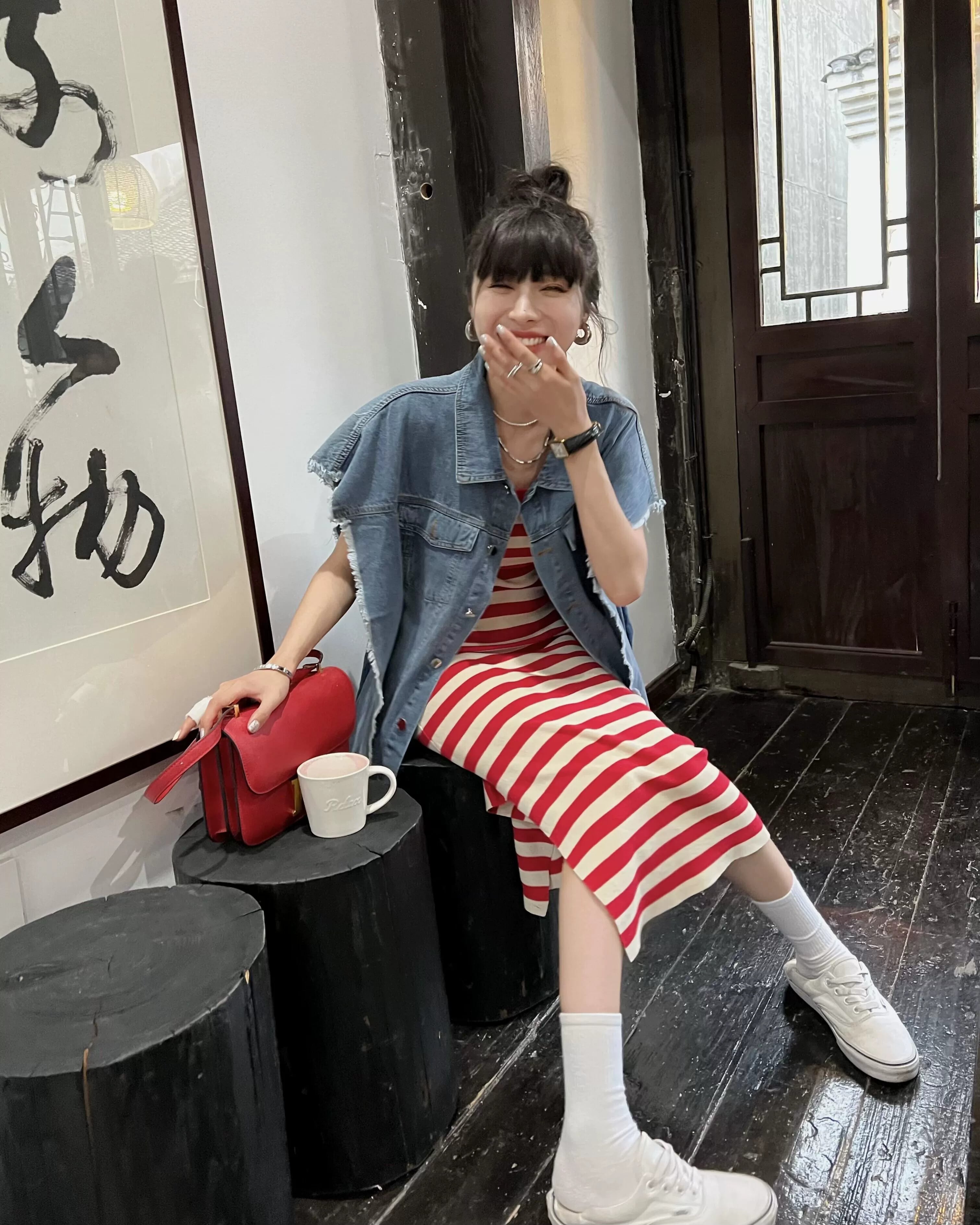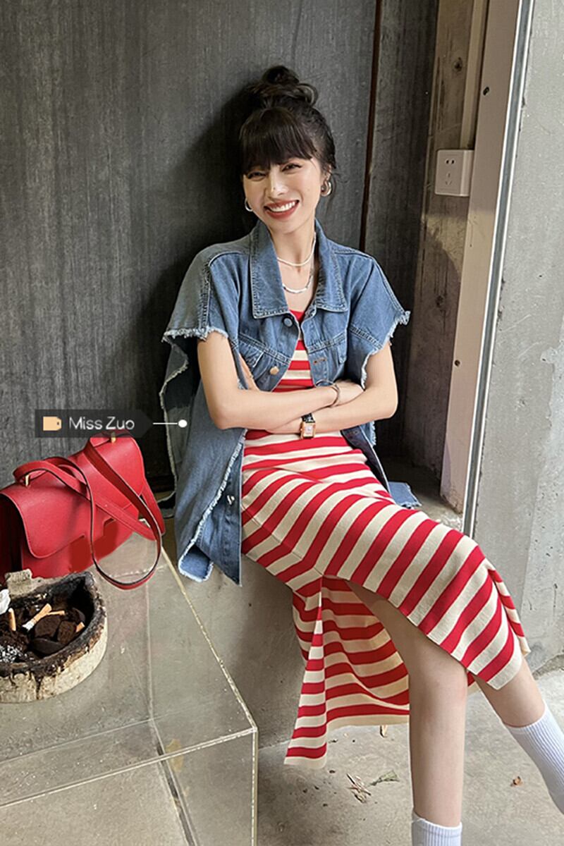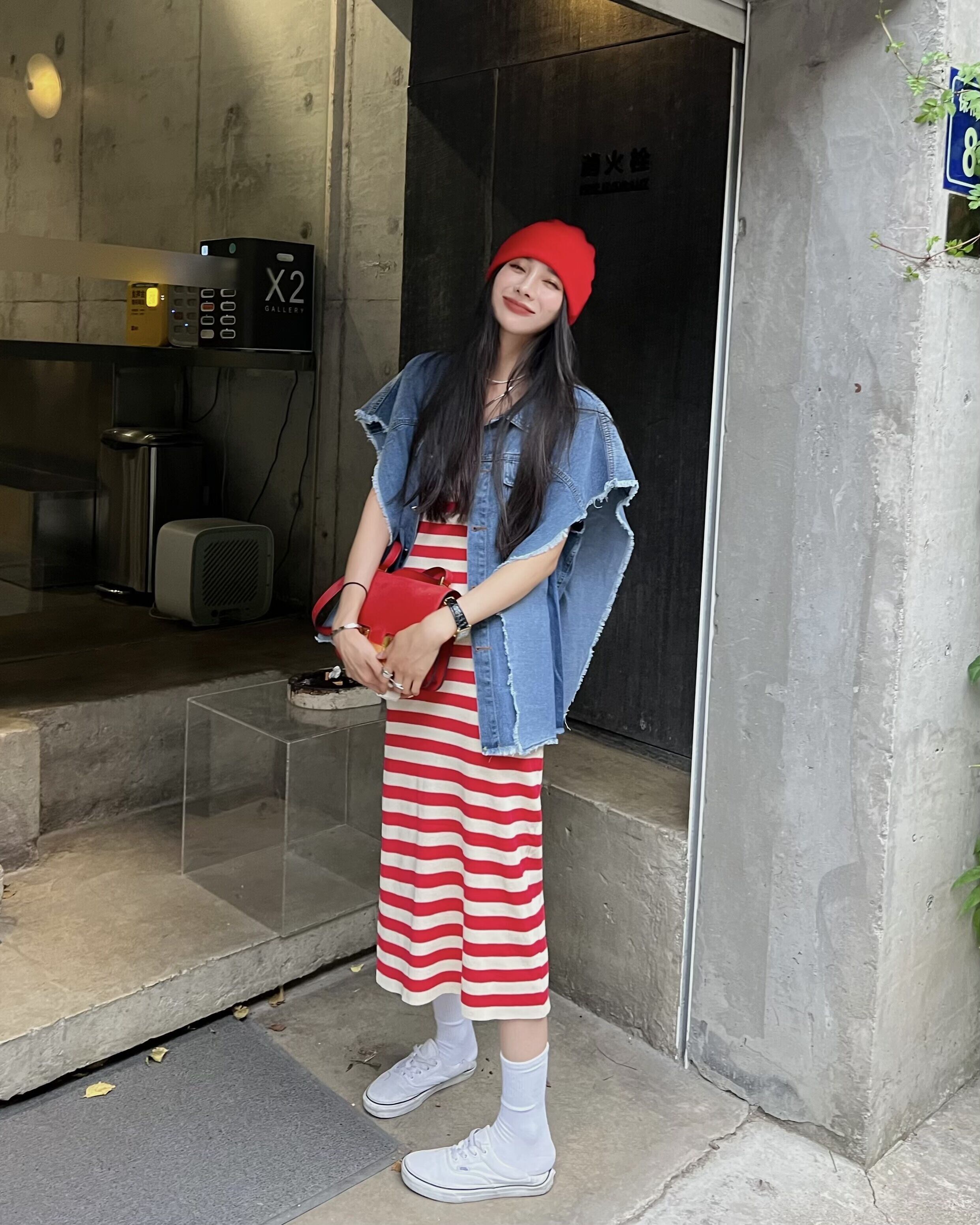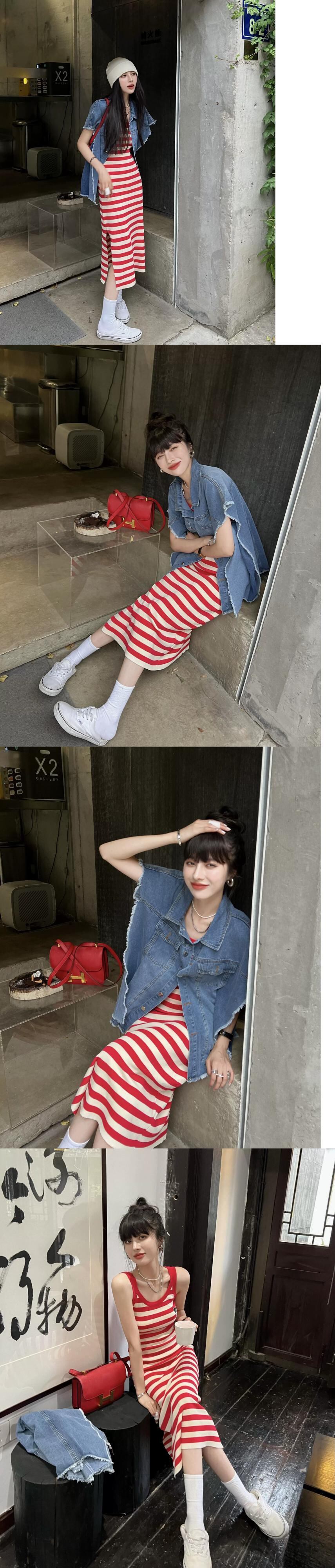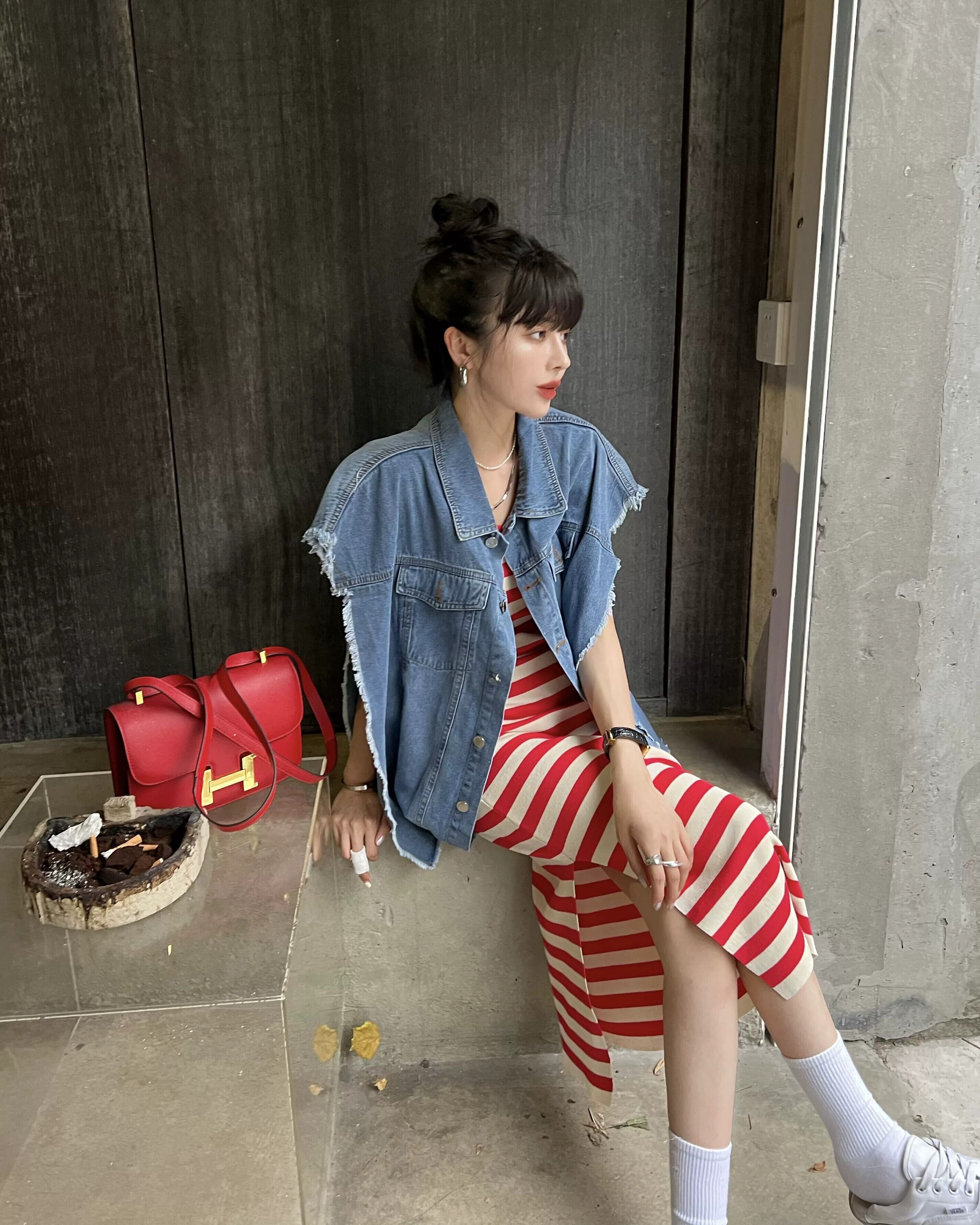 デニムベストジャケットレディース夏重ね着ノースリーブベストデザインセンスニッチファッションアインスタイルファッショナブルなチョッキ レッド サマー 夏物 8571667550374880