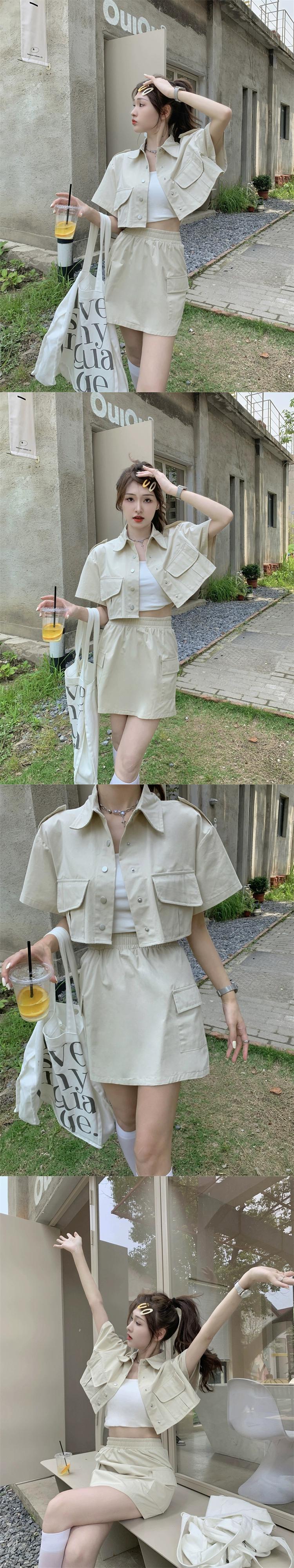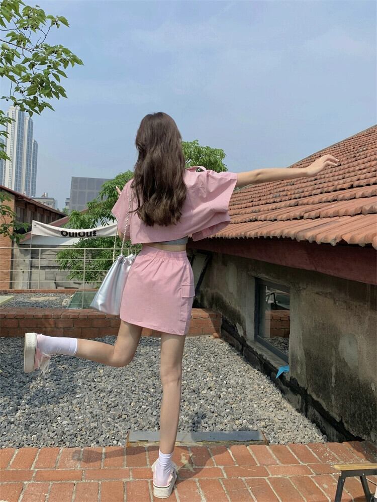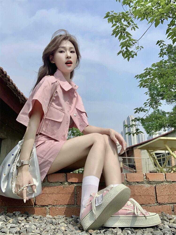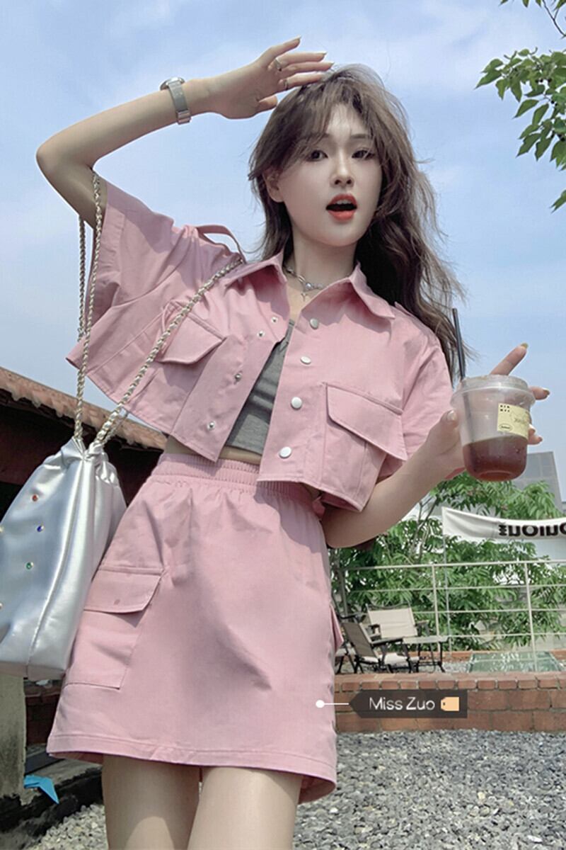 ピンクツーリング半袖ジャケット女性デザインセンスニッチ2023夏新しい小さなハイエンドセンスショートトップ サマー 夏物 8571619437745355