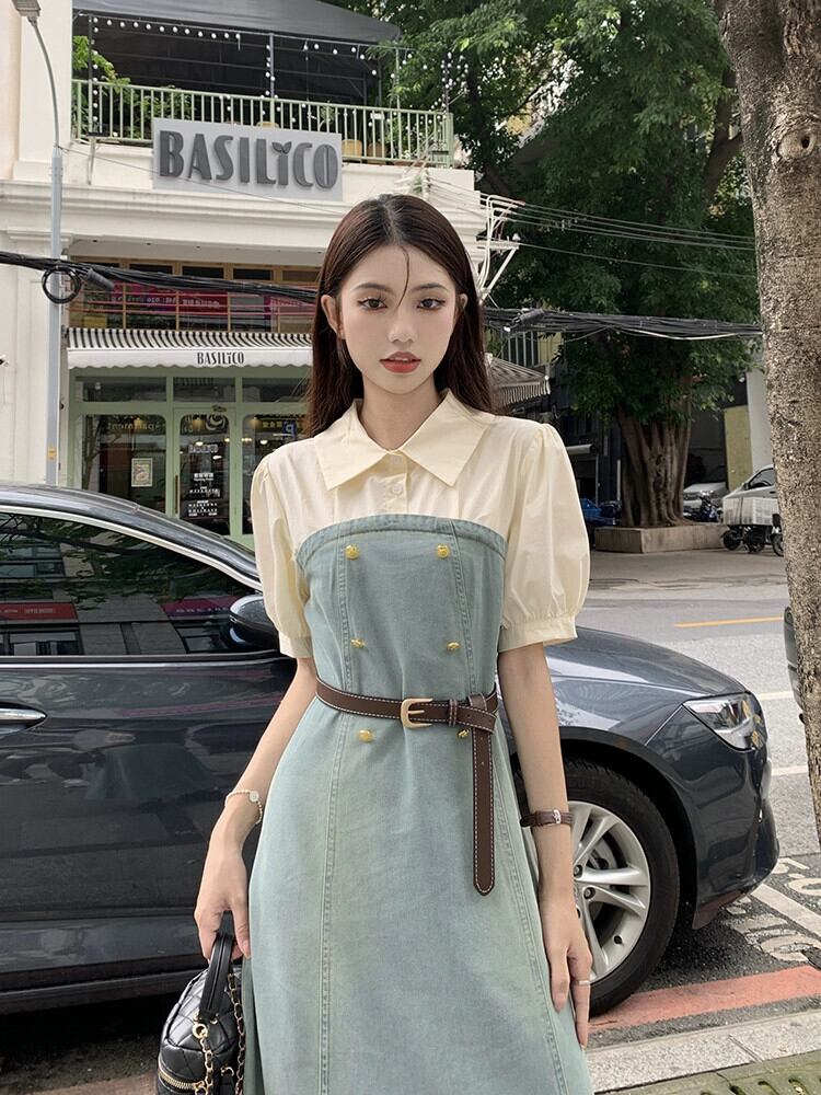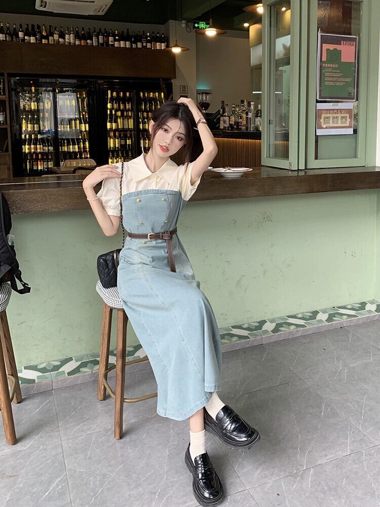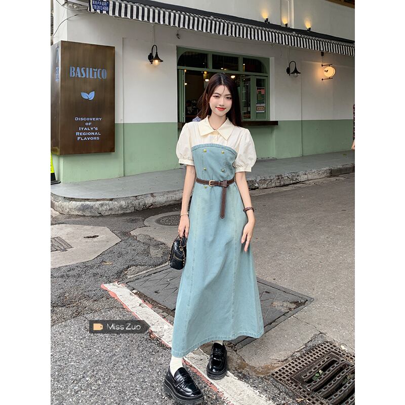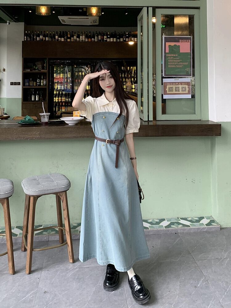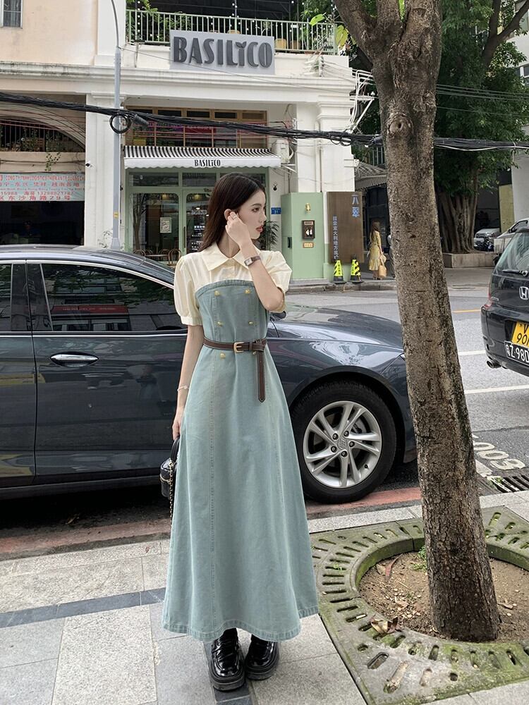 フェイクツーピースデニムドレスレディース2023夏新作フランス気質高級感小柄スリムロングスカート サマー 夏物 8571646355689707