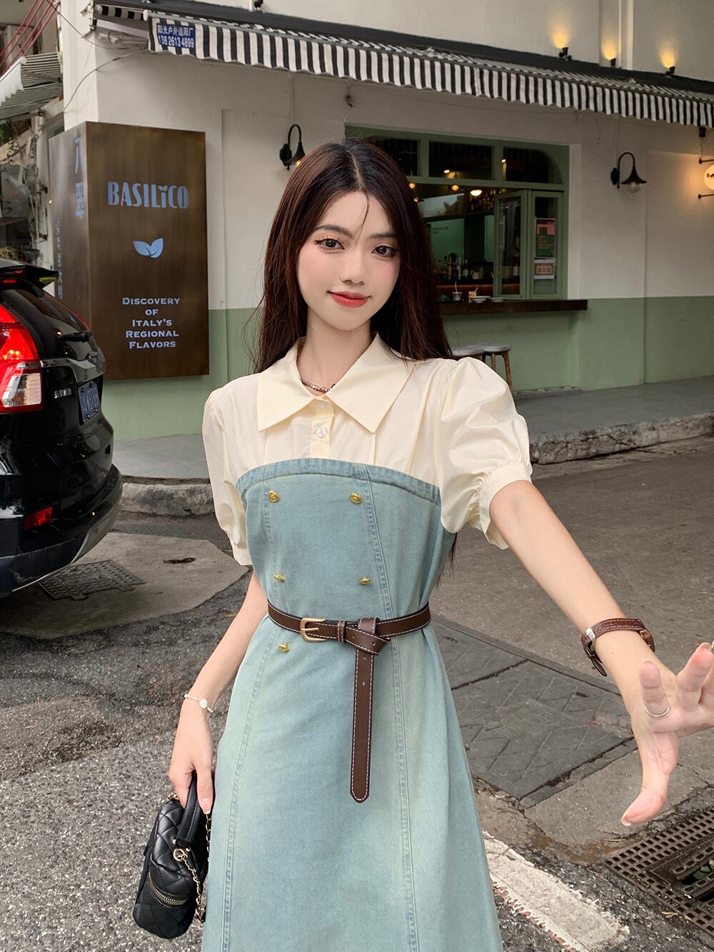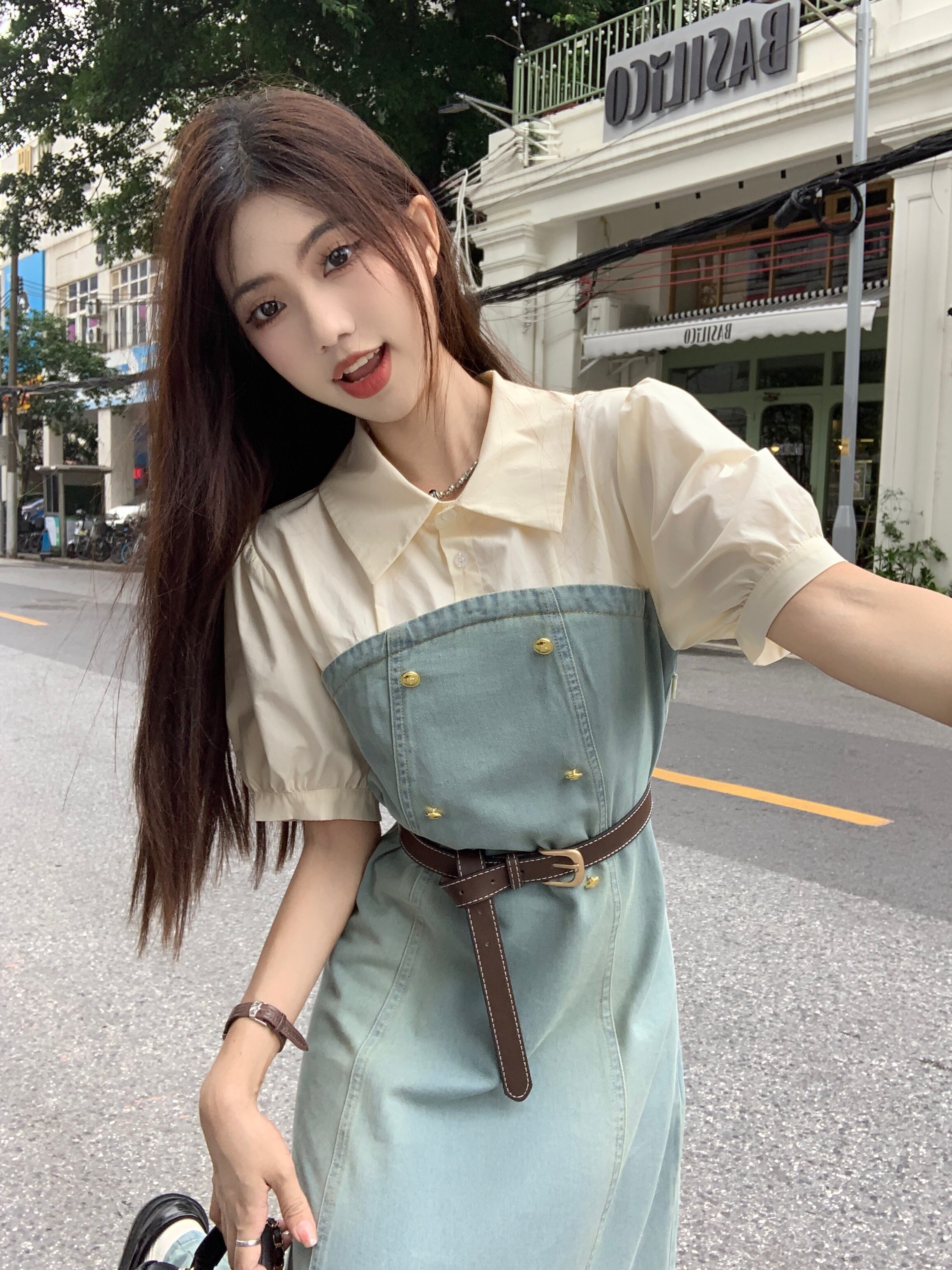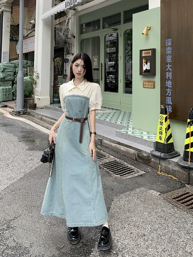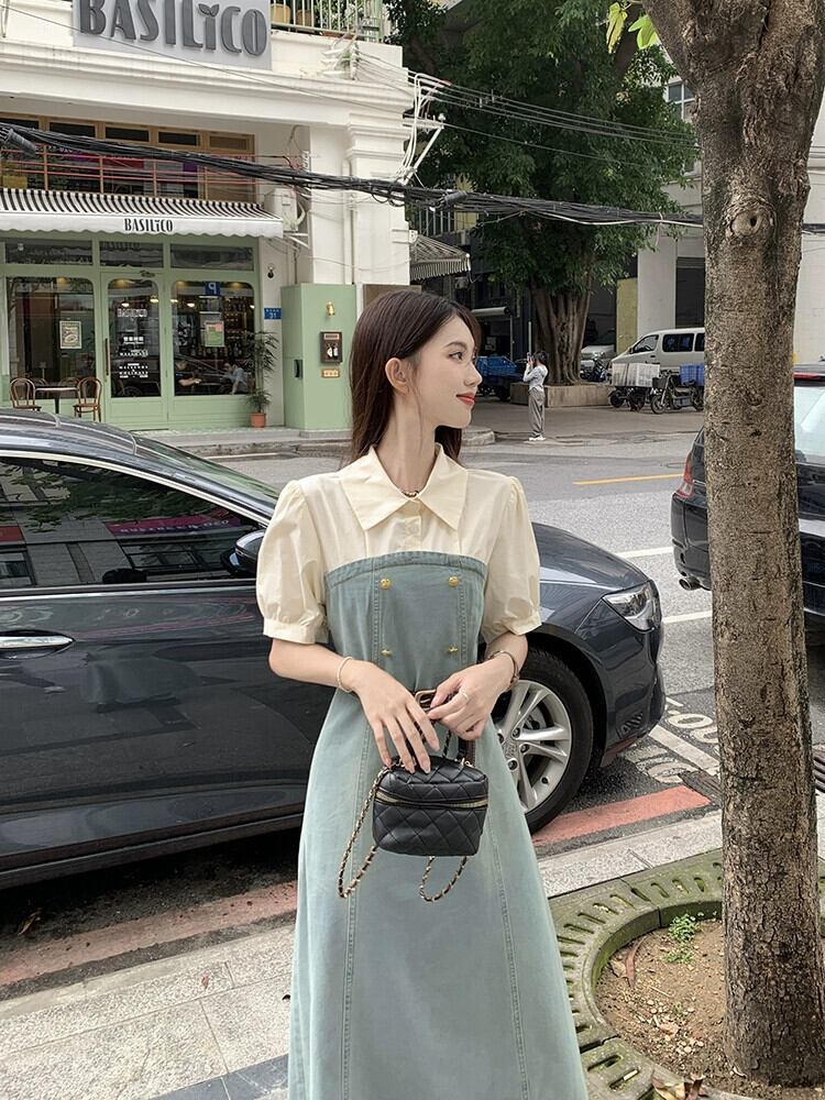 フェイクツーピースデニムドレスレディース2023夏新作フランス気質高級感小柄スリムロングスカート サマー 夏物 8571646355689707