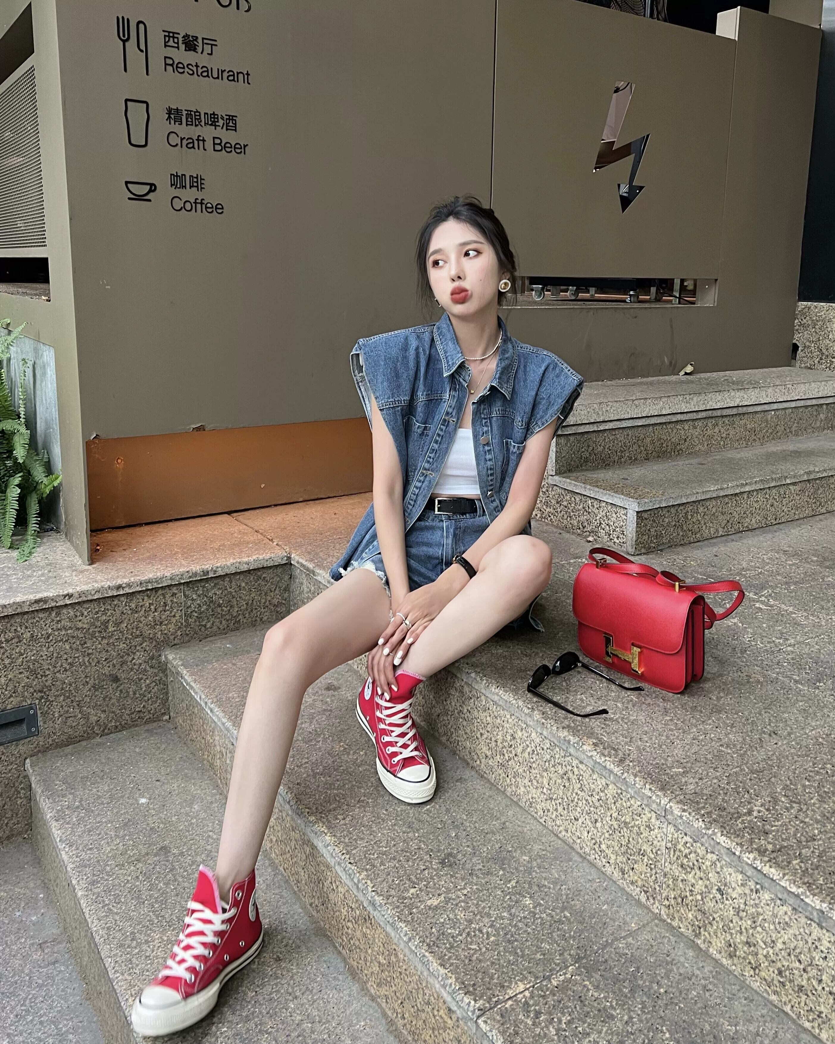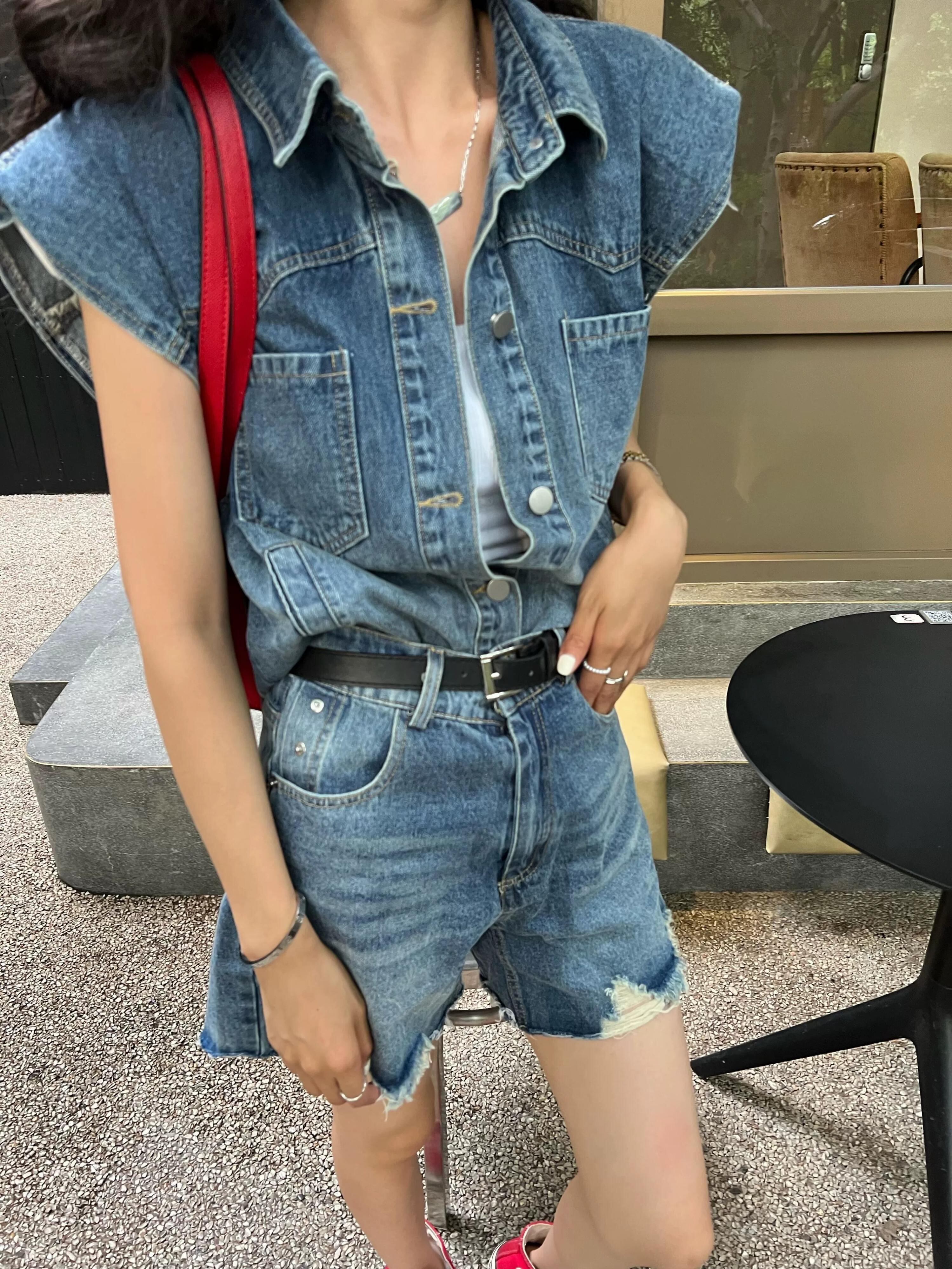 デニムベストジャケット女性の夏服ベストベスト 2023 新しいハイエンドレトロノースリーブベスト サマー 夏物 8571640418383409