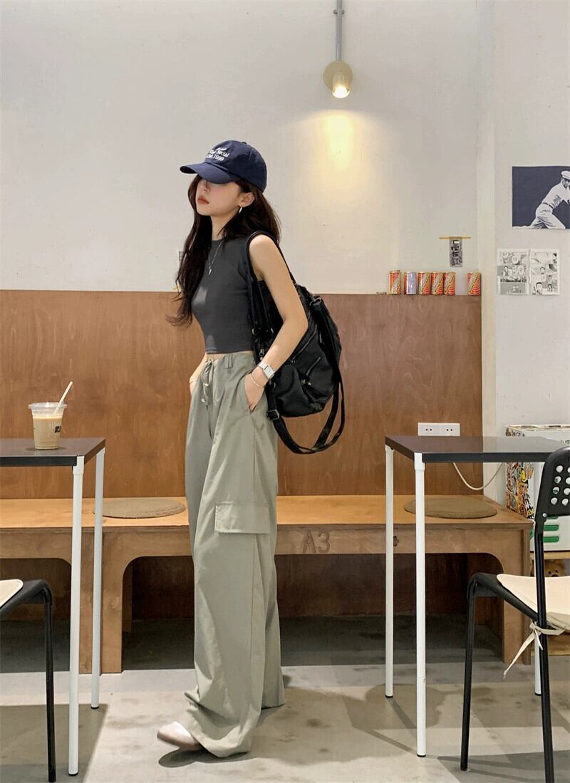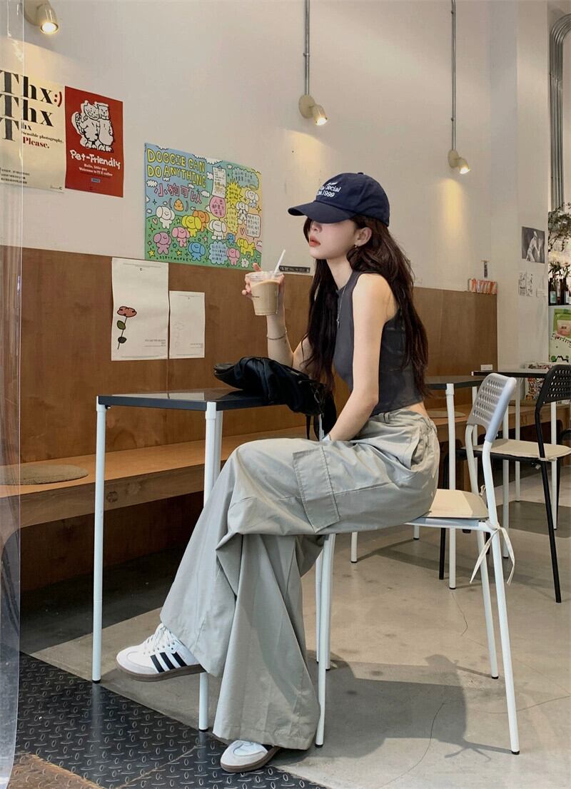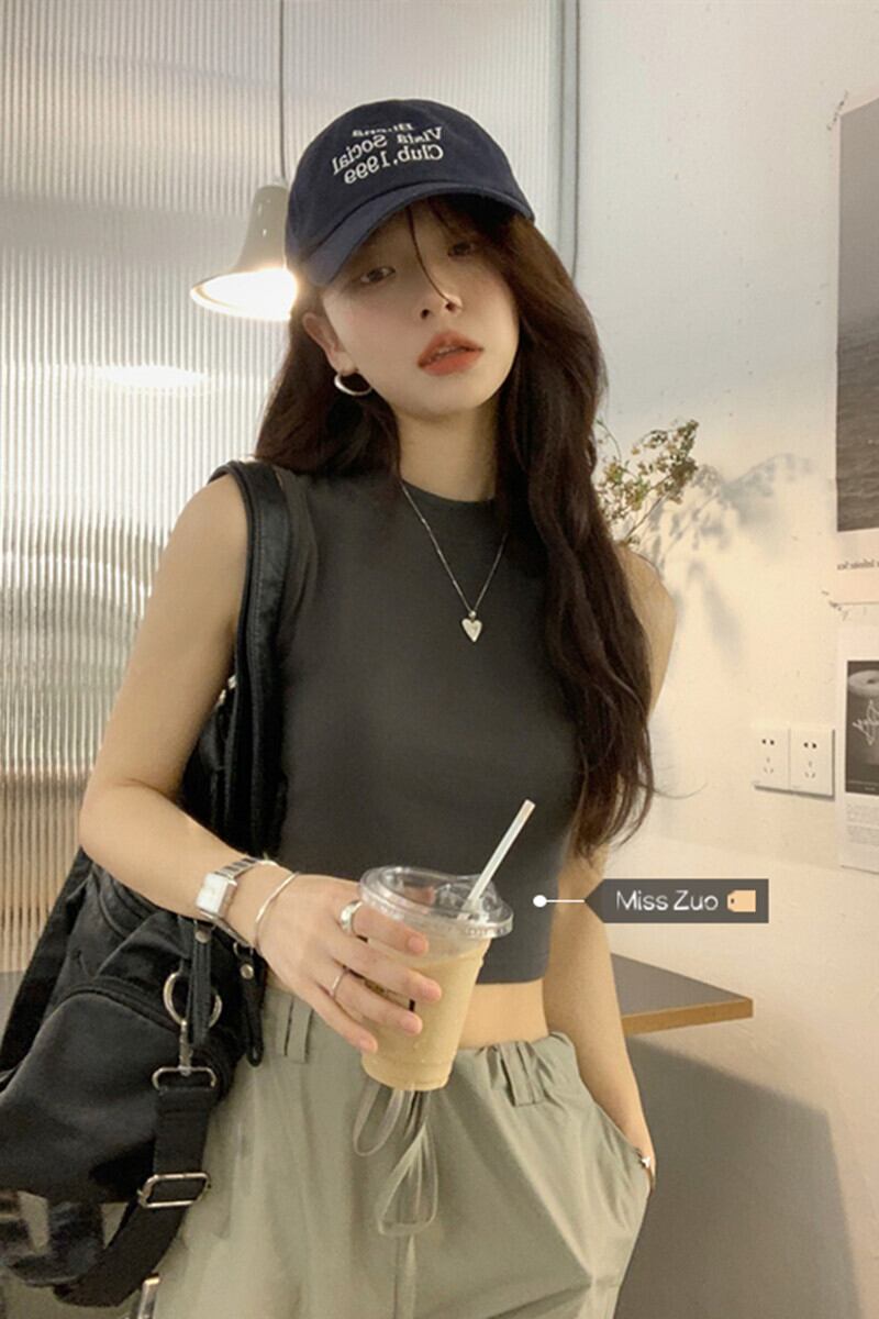 ダークグレー I字ベスト レディース アウター 夏 インナー デザイン感 ニッチ スイート スリム ショート ノースリーブ トップス 半袖 ハーフスリーブ 大人ガーリー スウィート キュート カジュアル サマー 夏物 8571623561899387