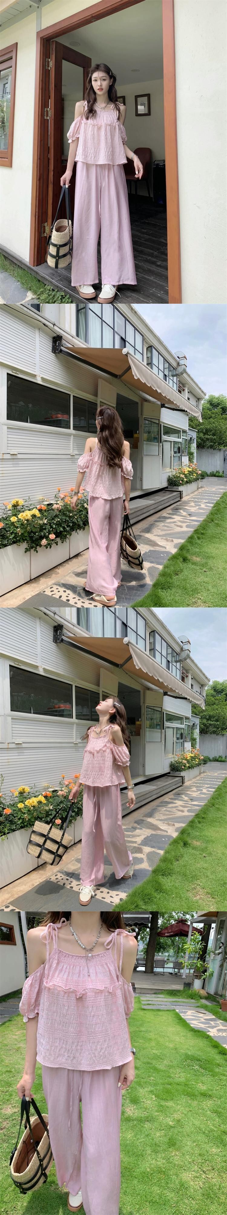 色:ホワイトトップ,ピンクトップ,黒いズボン,ピンクのズボン