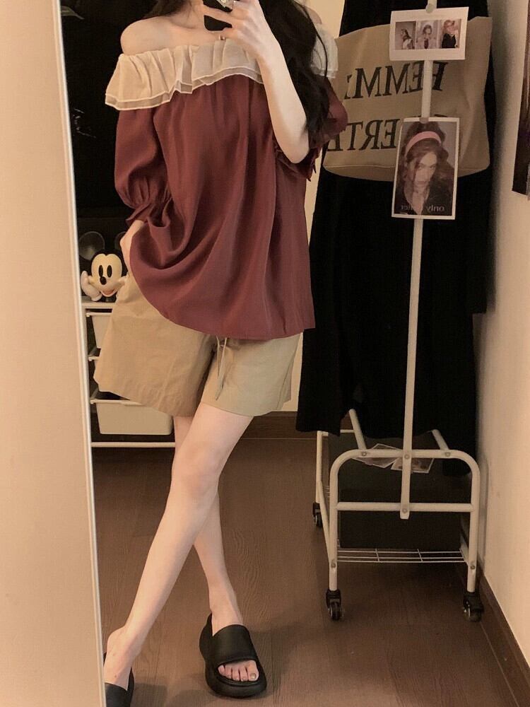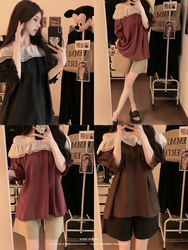 ルーズワンショルダートップレディースハイエンド2023年夏新デザインセンスニッチ小さめ半袖シャツ サマー 夏物 8571636276099828