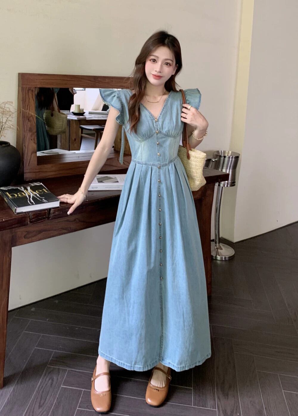 Feifei スリーブデニムドレスの女性の夏の 2023 新しい香港スタイルのレトロシックな気質のハイエンドロングスカート サマー 夏物 8571619270993216