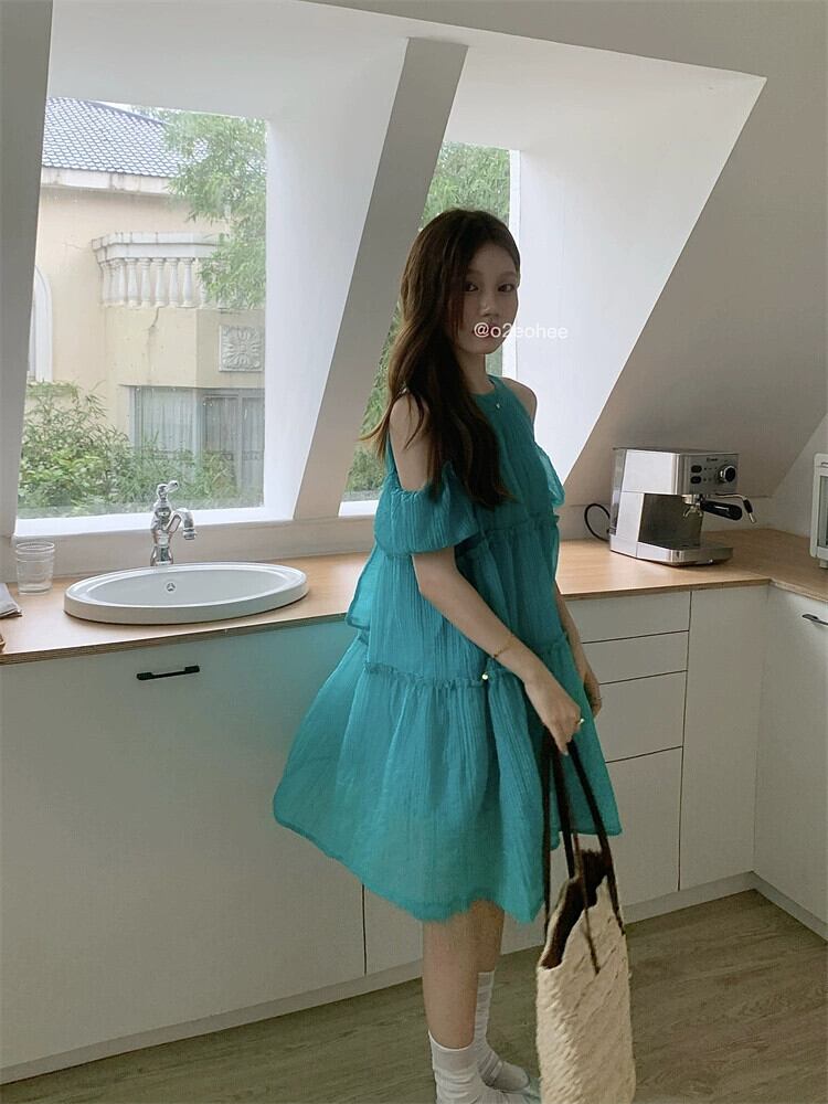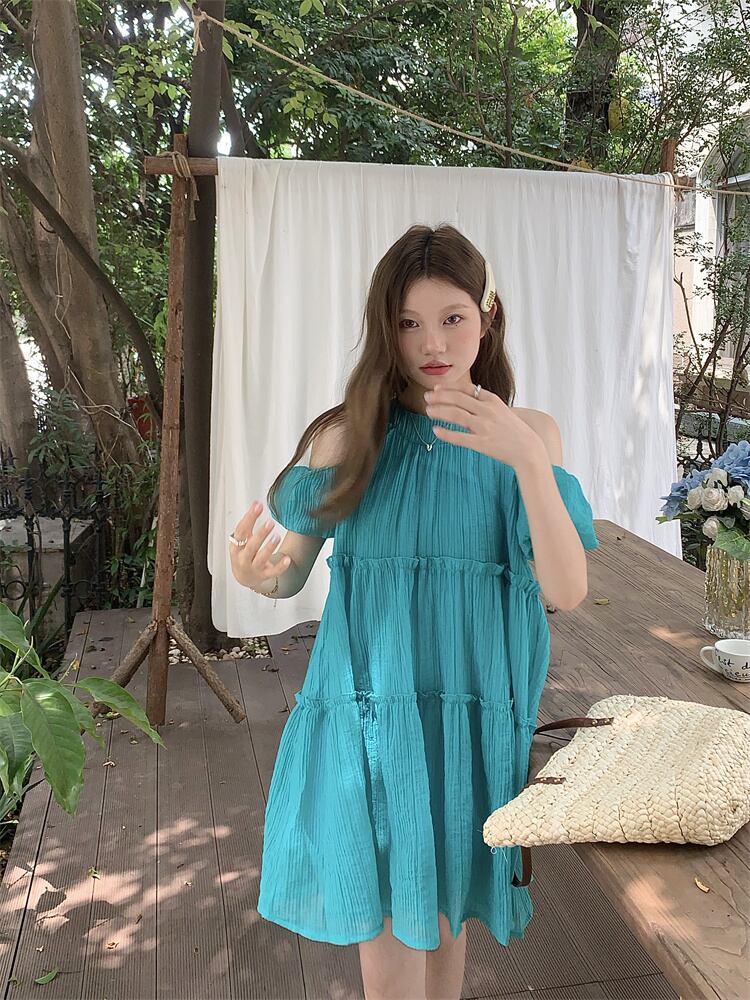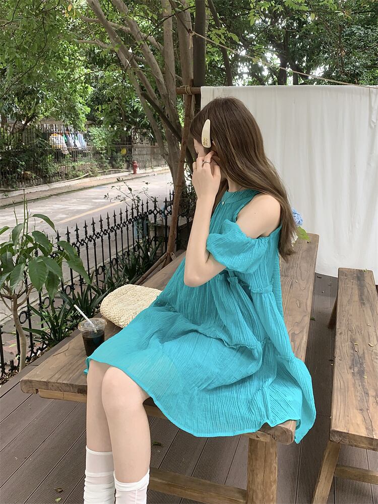 オフショルダードレスの女性の夏の 2023 新しい甘い初恋小さな男が腹をカバーし、年齢を減らすルーズドールスカート 大人ガーリー スウィート キュート カジュアル サマー 夏物 8571661037434495