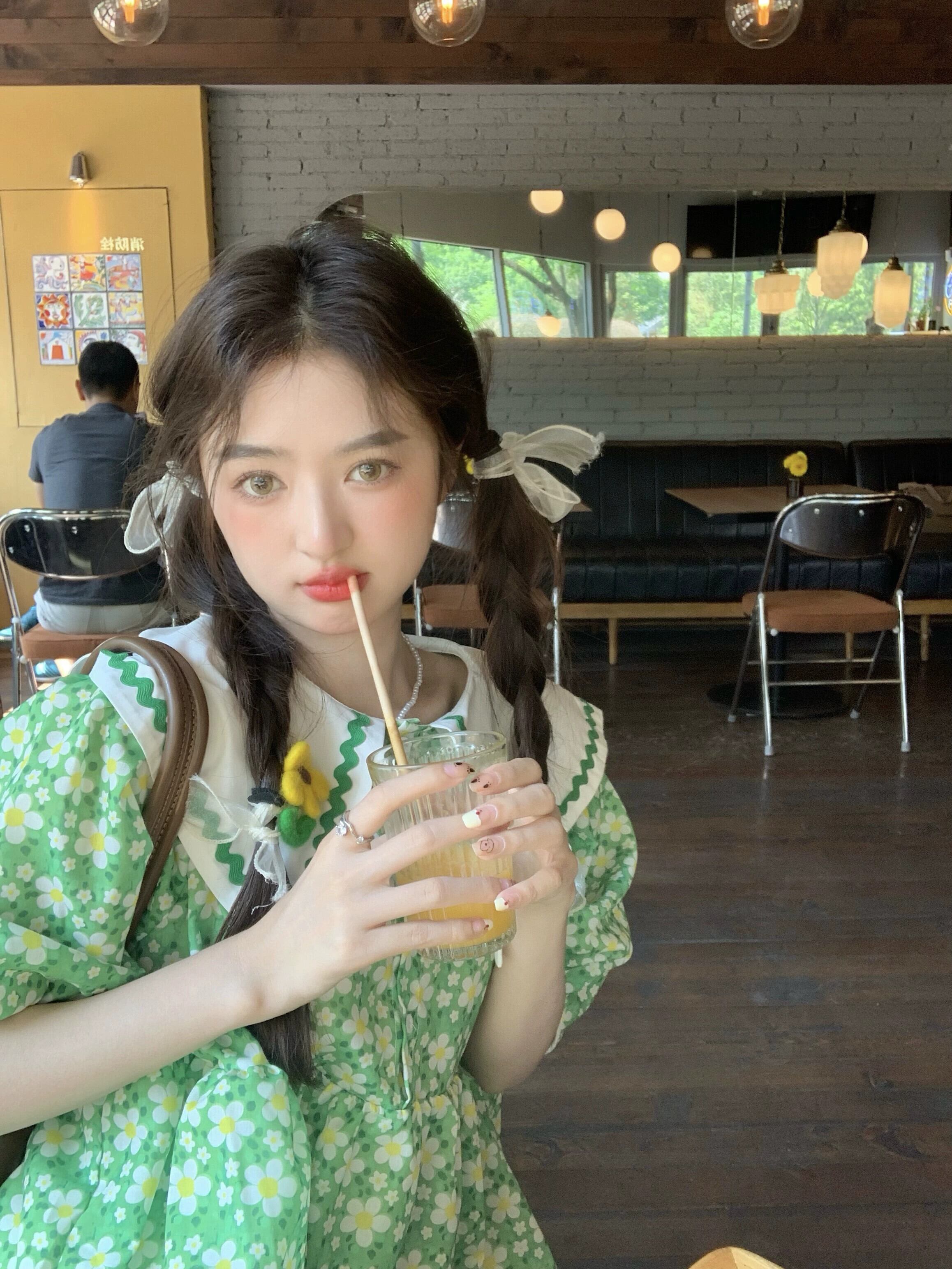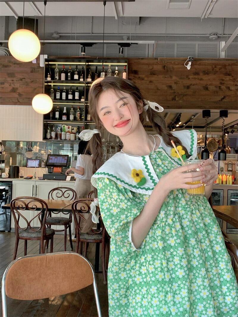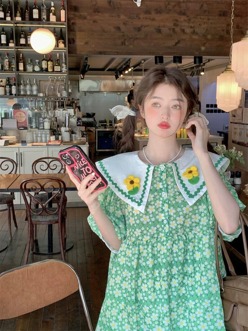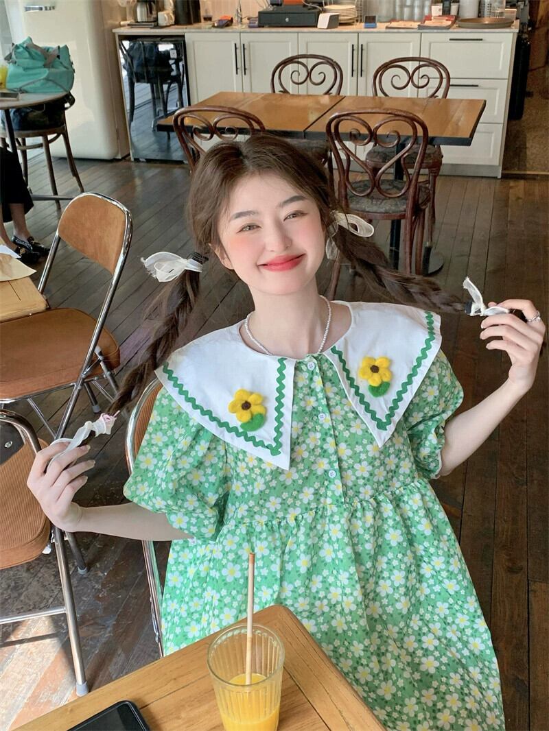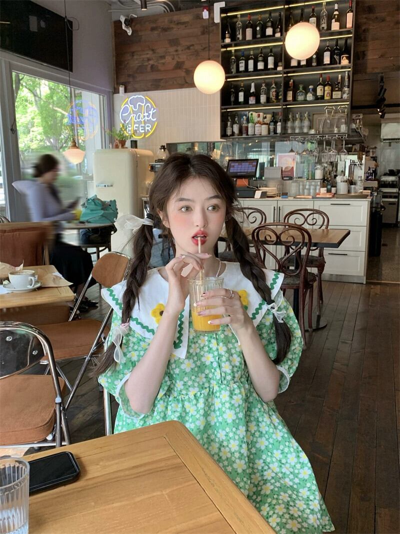 ドールカラー花柄ドレス女性の 2023 夏の新しい新鮮で甘いカバー腹と年齢削減小さなスカート 大人ガーリー スウィート キュート カジュアル サマー 夏物 8571680149382858