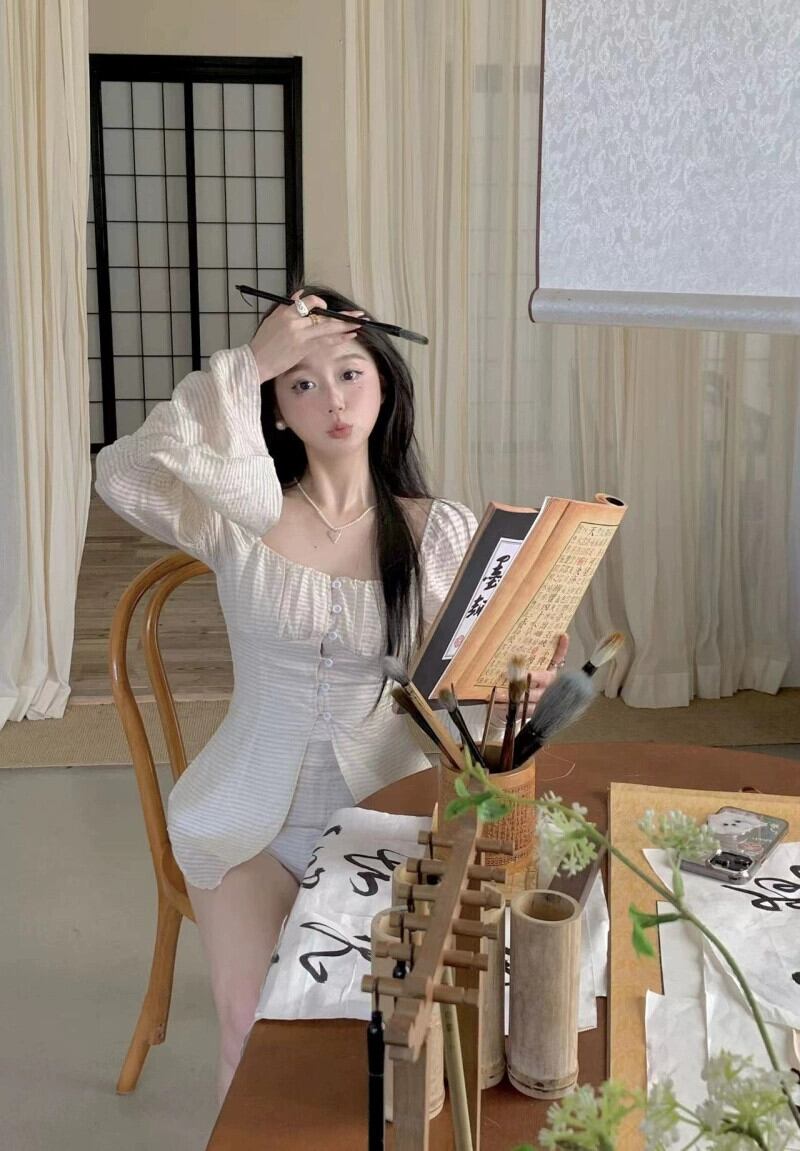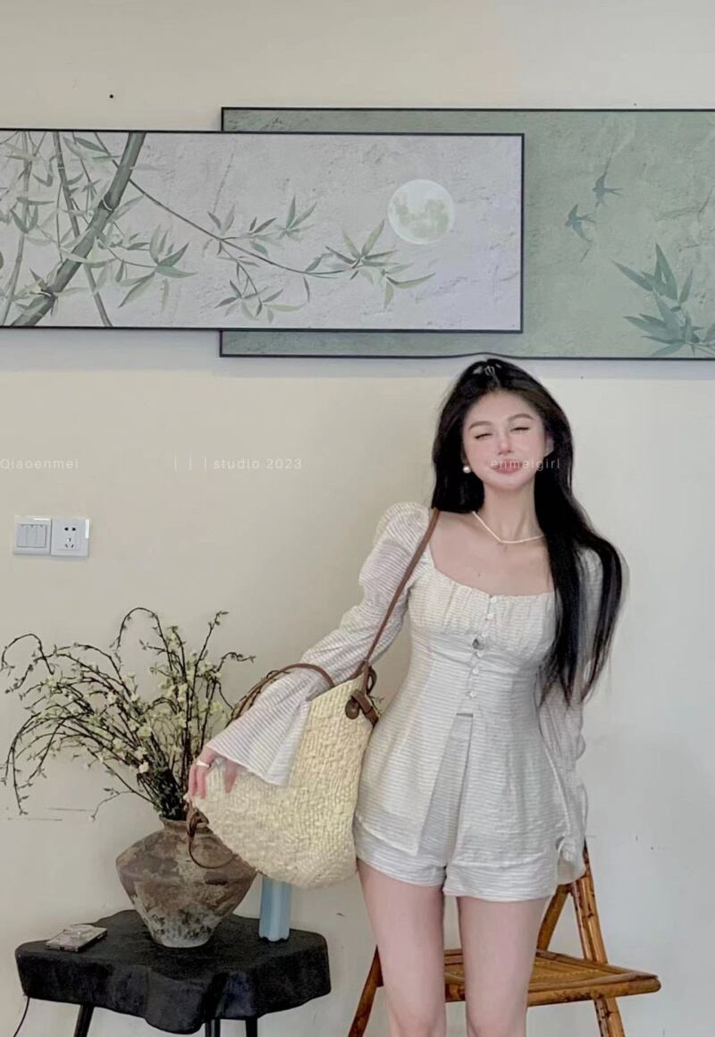 スクエアカラーウエストトップ女性の夏のハイエンドデザインセンスニッチ2023新しいフレンチスタイルの美しい長袖シャツ ロング サマー 夏物 スクウェア 8571623686845107