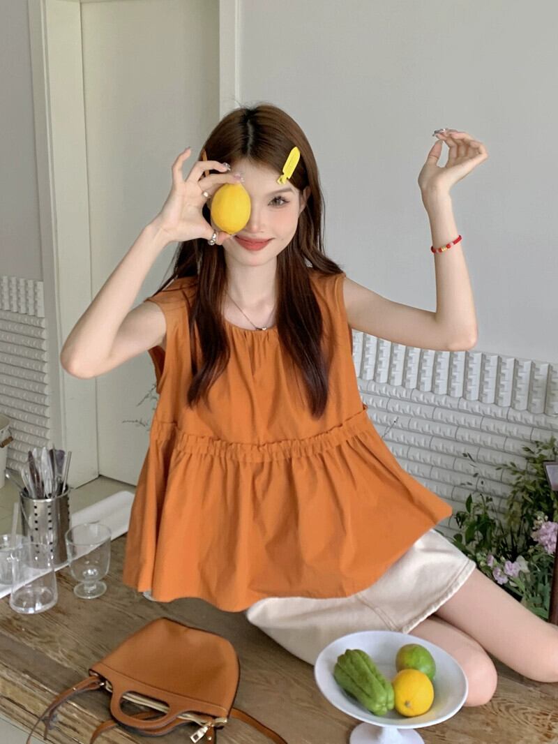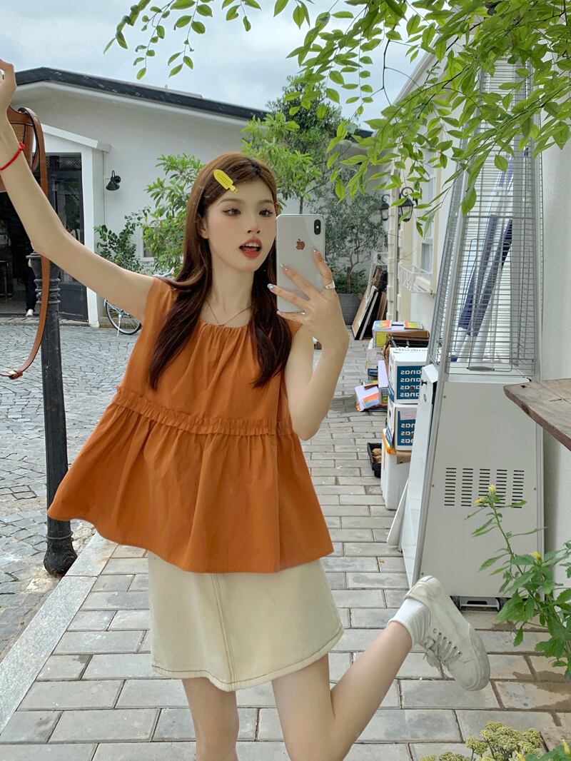ドールシャツトップ女性の夏のデザインセンスニッチ 2023 新しい甘いカバーベリーノースリーブベストシャツ 大人ガーリー スウィート キュート カジュアル サマー 夏物 8571690719935626