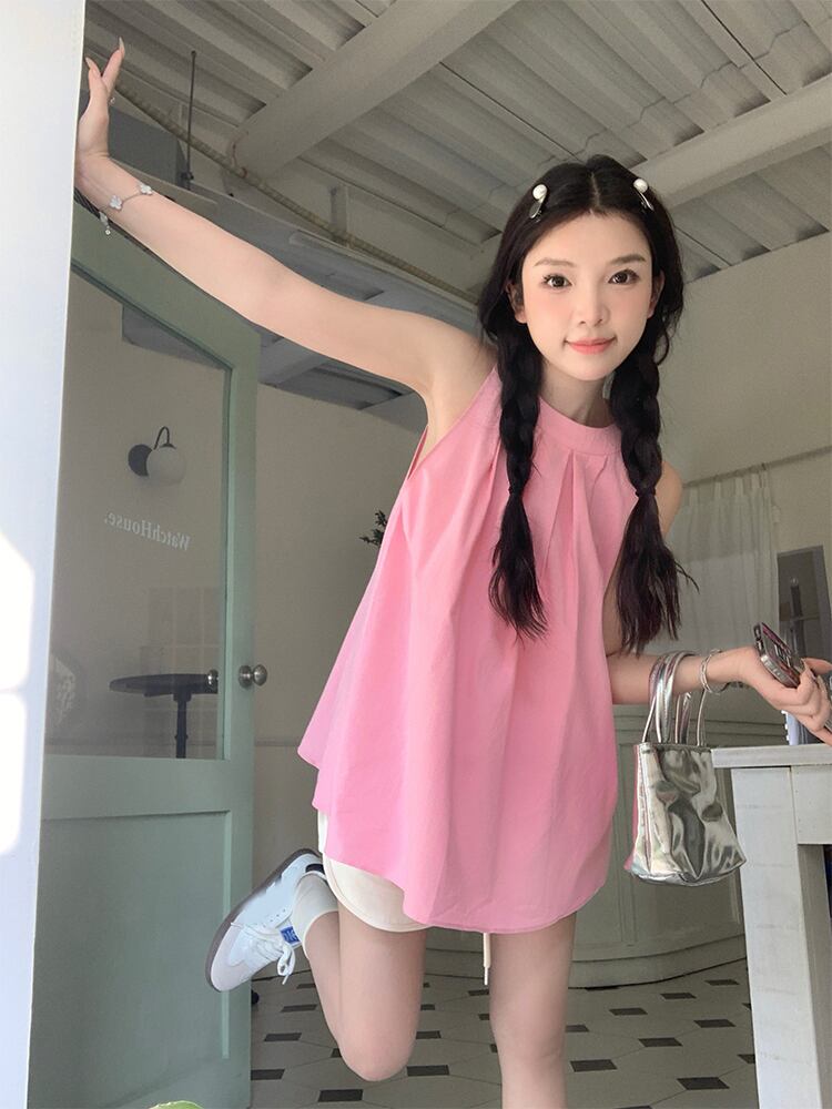 ベビーシャツトップ女性の夏のドーパミンウェア2023新しい甘いピンクのノースリーブシャツは年齢を減らし、お腹をカバーします 大人ガーリー スウィート キュート カジュアル サマー 夏物 8571617234861745