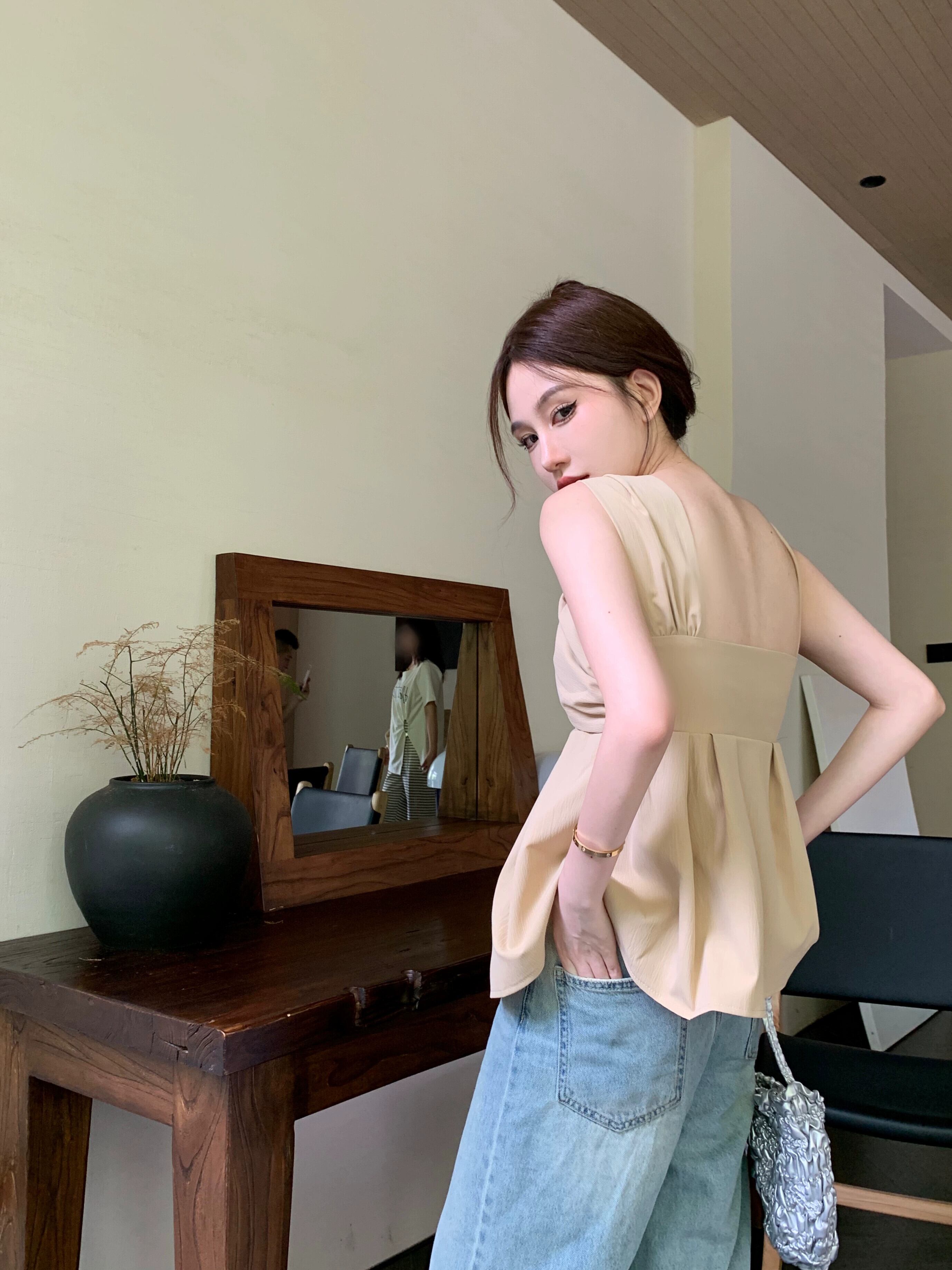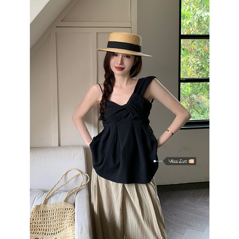 ブラック キンク キャミソール レディース アウター ノースリーブ シャツ 夏 ハイエンド ユニーク シック お腹カバー トップ サマー 夏物 8571691308207850
