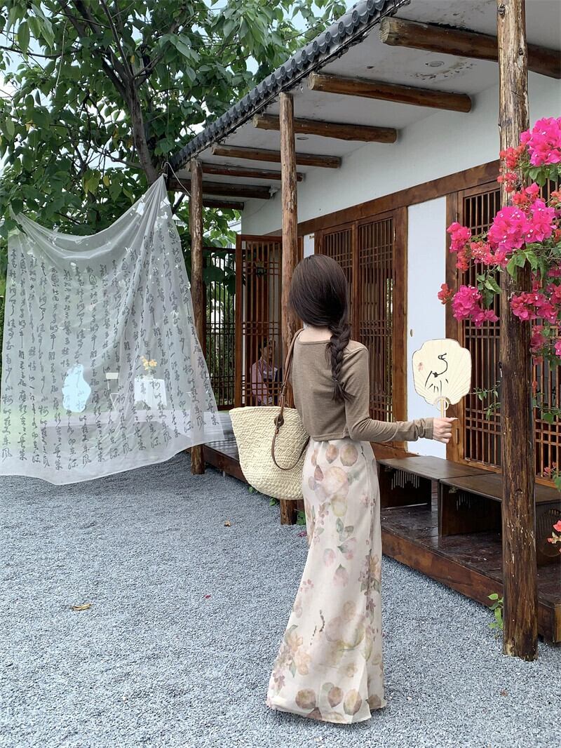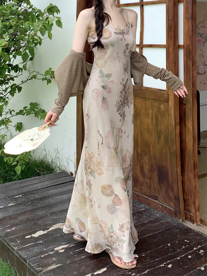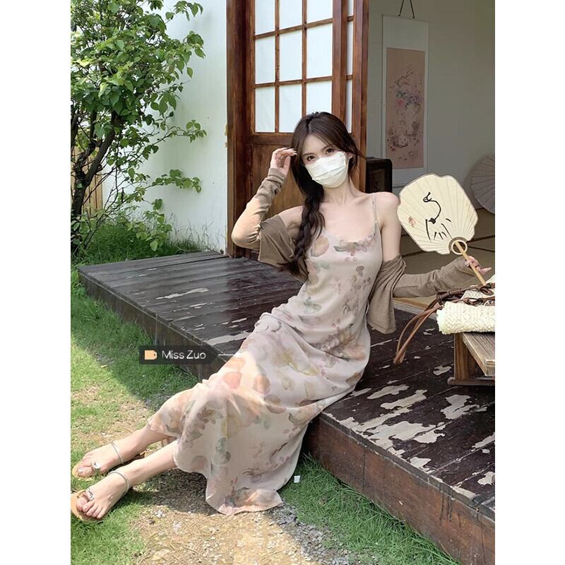 プリントサスペンダードレスの女性の夏の 2023 新しいフランスのレトロな美しい気質ハイエンドスリムロングスカート サマー 夏物 8571627884065370