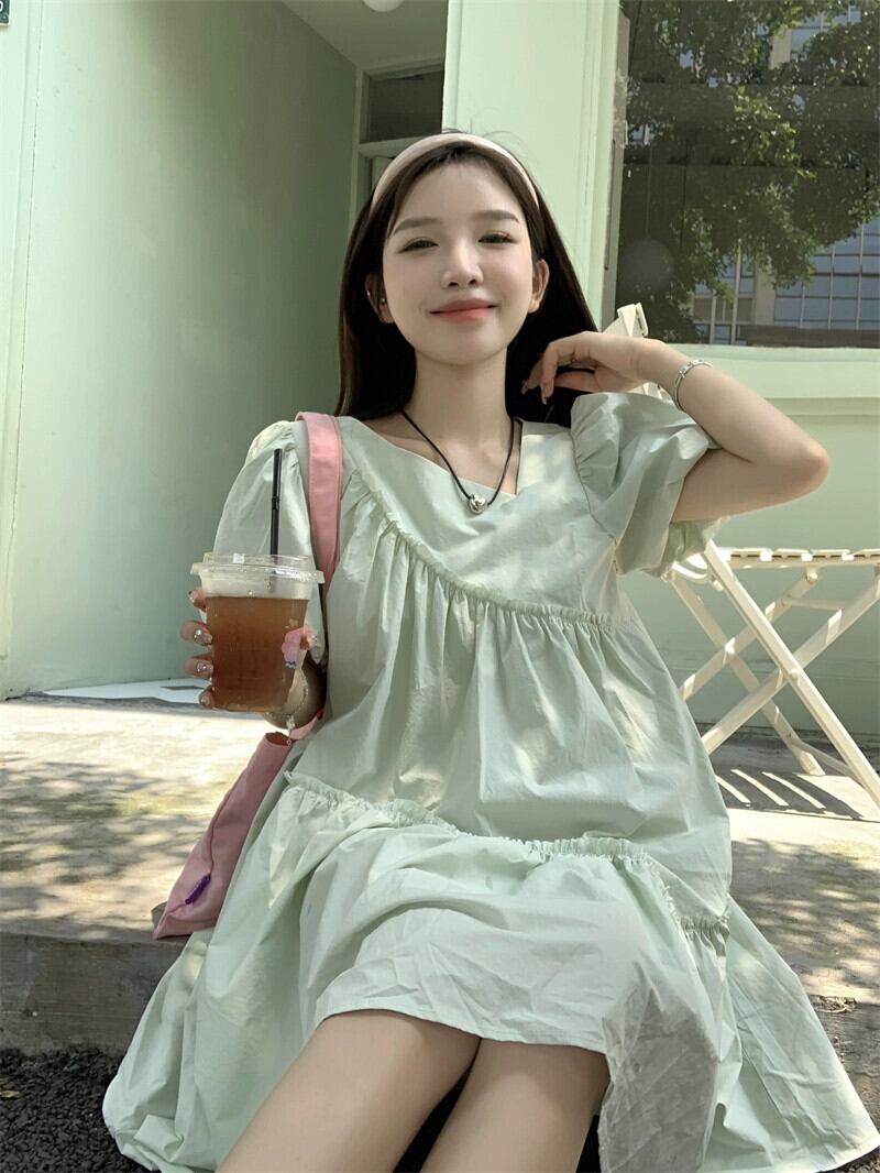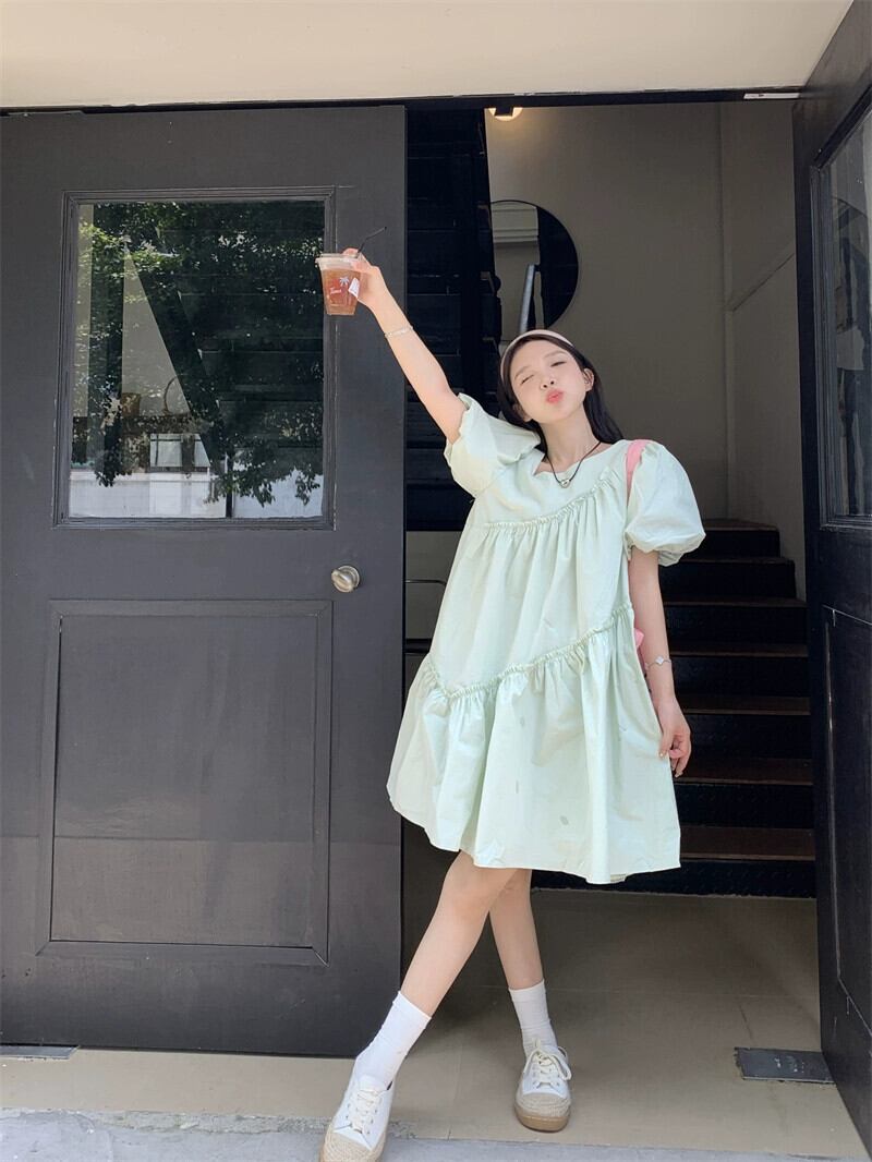 パフスリーブドレスの女性の夏の 2023 新しいニッチデザインセンス甘い初恋カバー腹年齢削減スカート 大人ガーリー スウィート キュート カジュアル サマー 夏物 8571638642327412