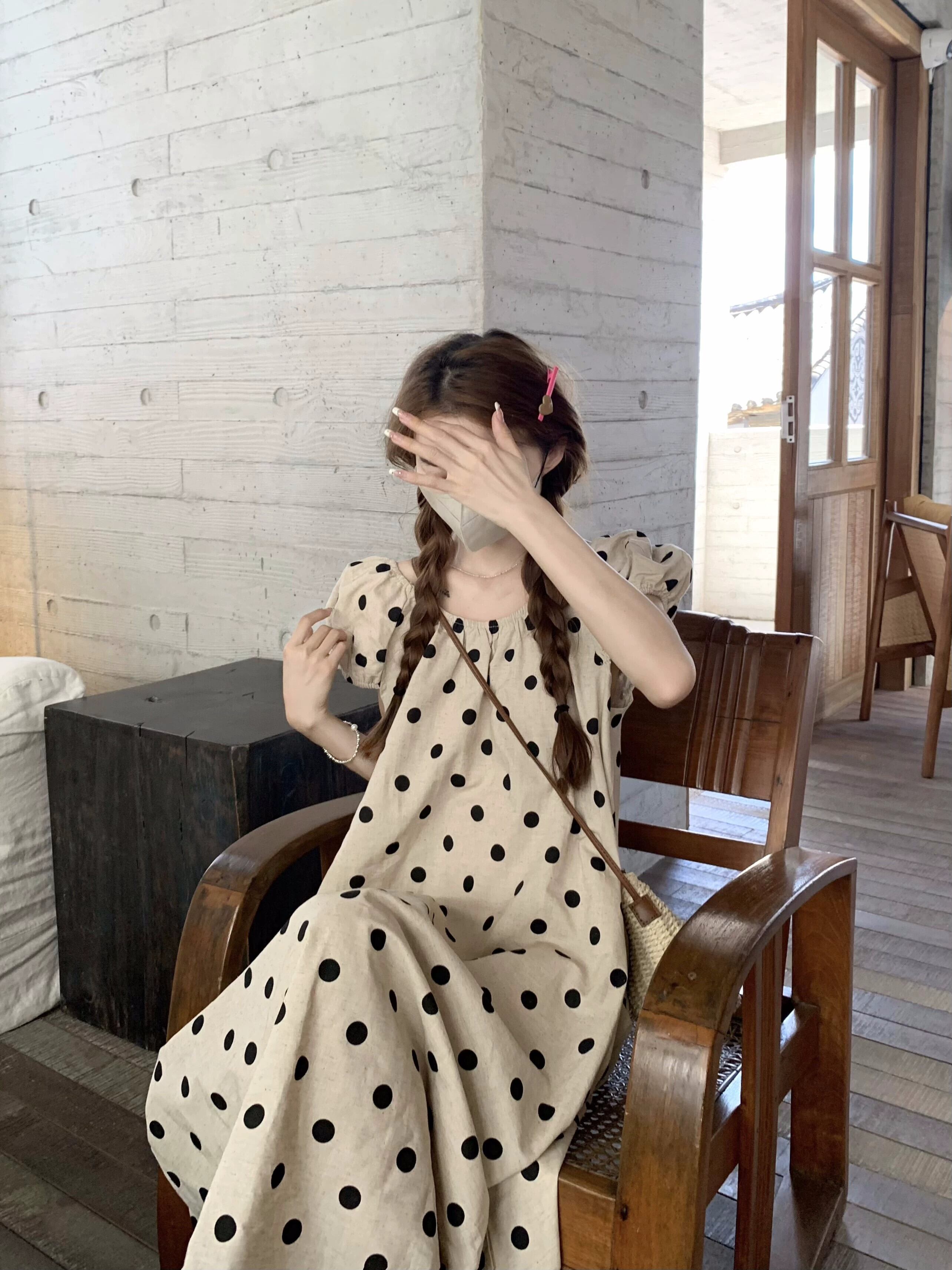 パフスリーブ水玉ドレスの女性の夏の 2023 新しいフランスのレトロなロマンチックな摩耗と優しい風ロングスカート サマー 夏物 8571624561778046