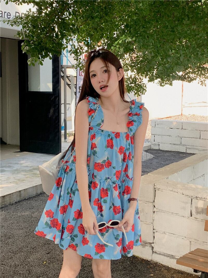 花柄スリングドレス女性の夏 2023 新しいフランスの甘い小さな男が腹をカバーし、年齢を減らすホリデー スカート 大人ガーリー スウィート キュート カジュアル サマー 夏物 8571626465659838