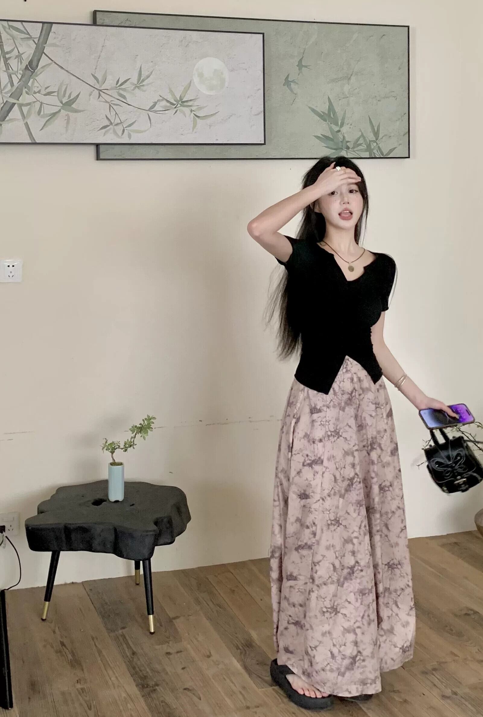 インクプリント袴レディース 2023 夏の新スタイルハイウエストドレープワイドレッグパンツルーズオールマッチカジュアルパンツ ハイウェスト サマー 夏物 ワイドパンツ 8571617707497007