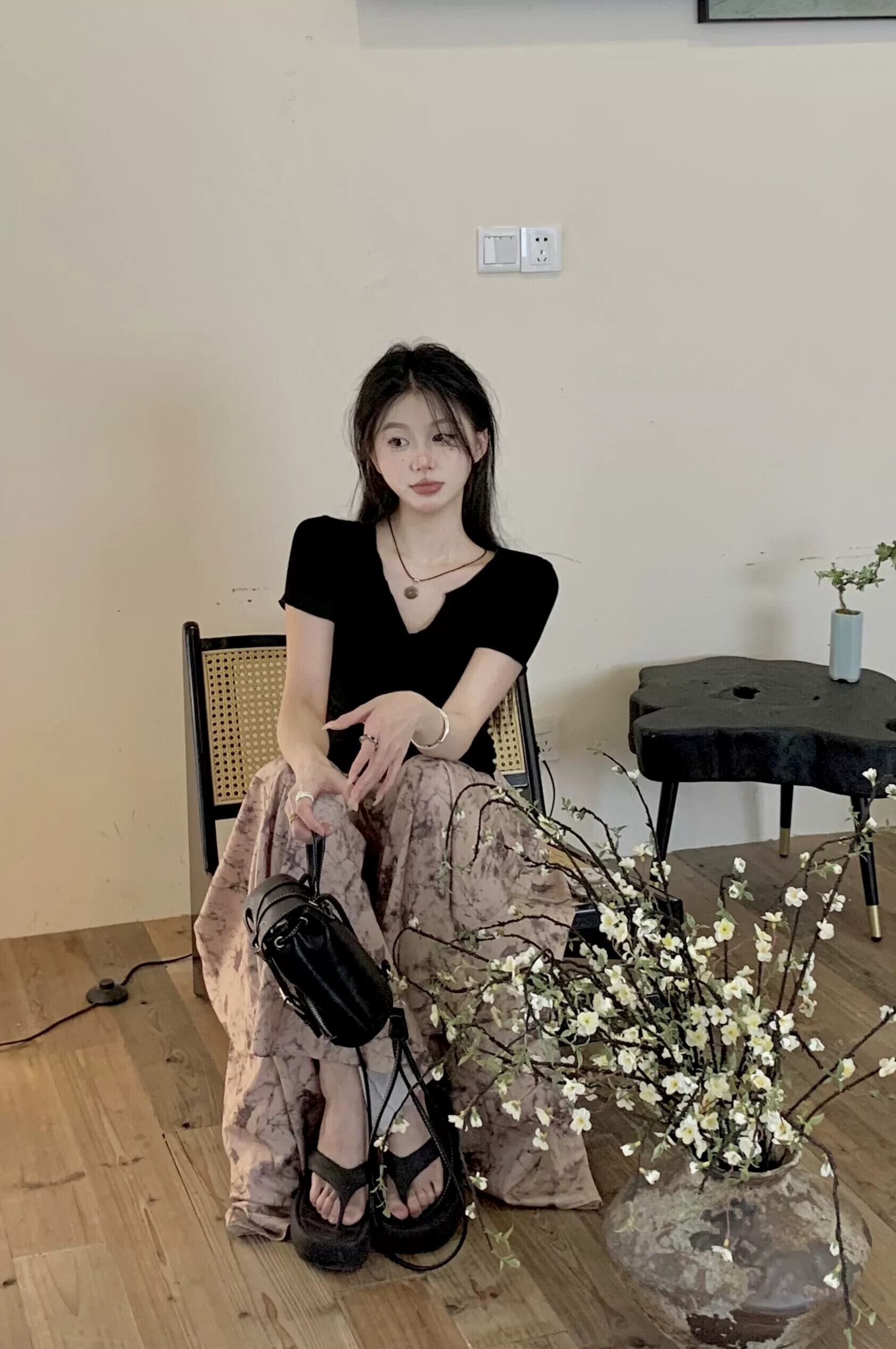 色:ブラックトップ,インクワイドレッグパンツ