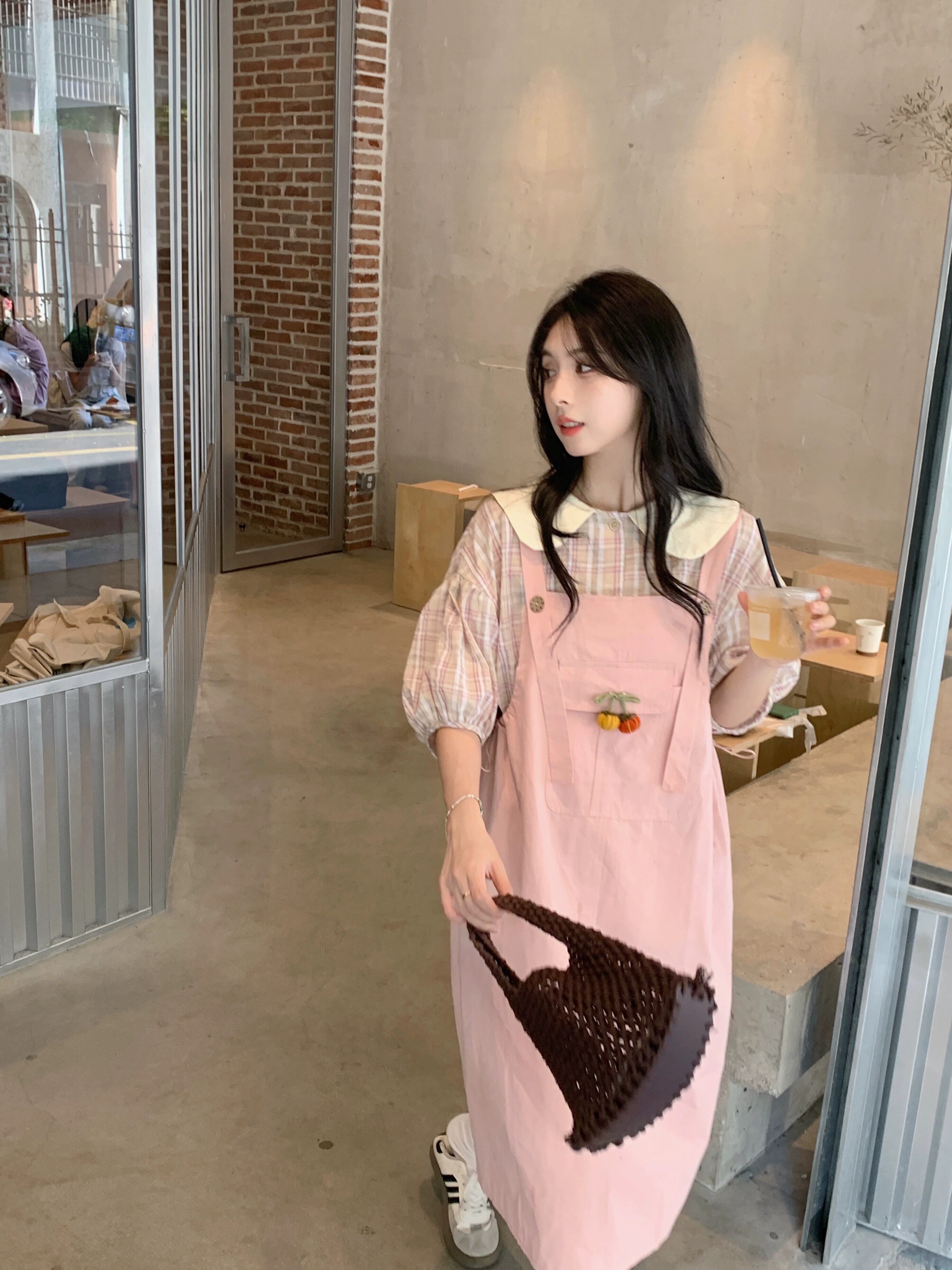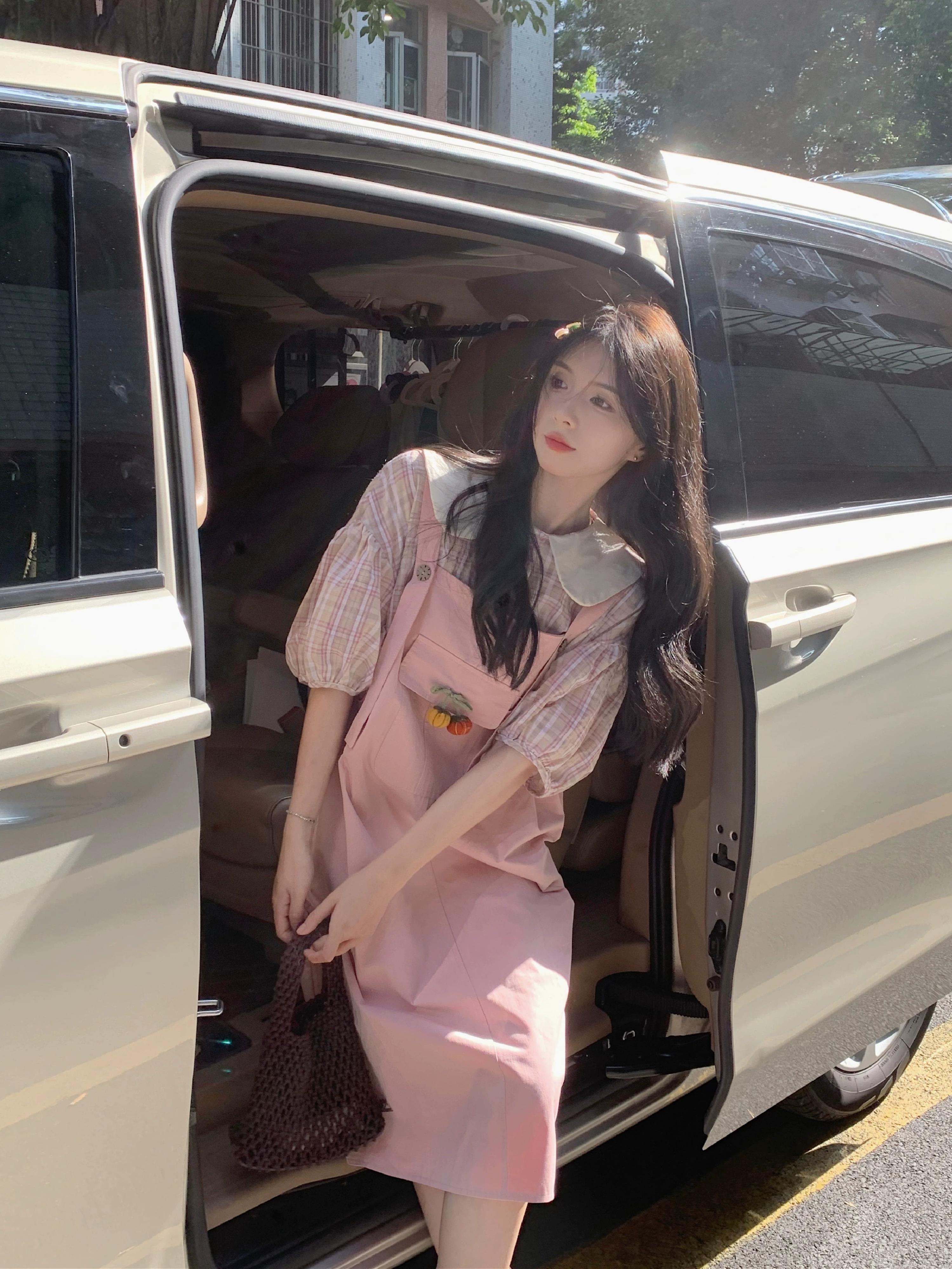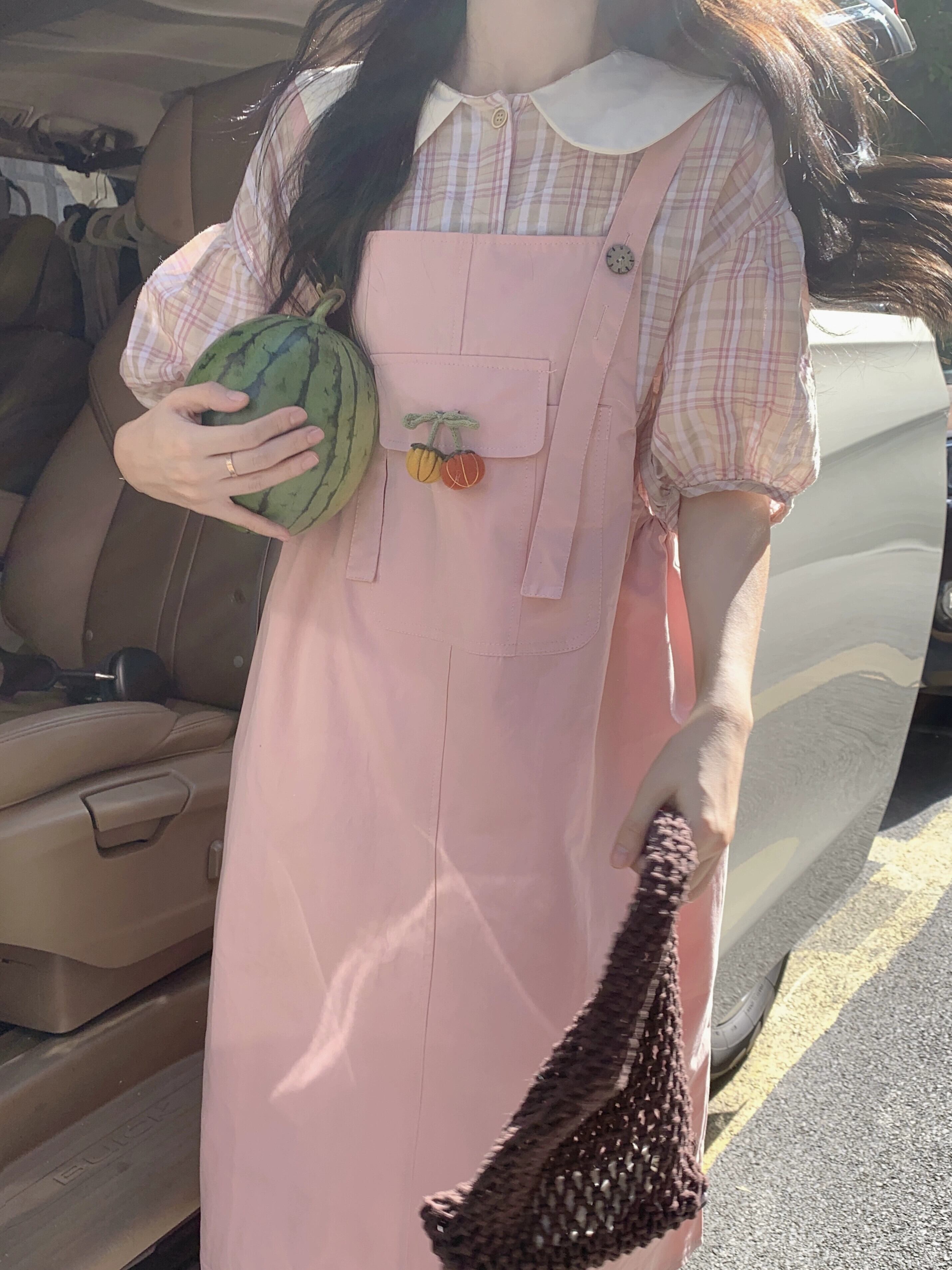 ピンクのサスペンダードレスの女性の 2023 夏の新しいミルク従順な甘い洋梨の形のフィギュア eign スタイル年齢を減らすロングスカート 大人ガーリー スウィート キュート カジュアル サマー 夏物 8571622338231433