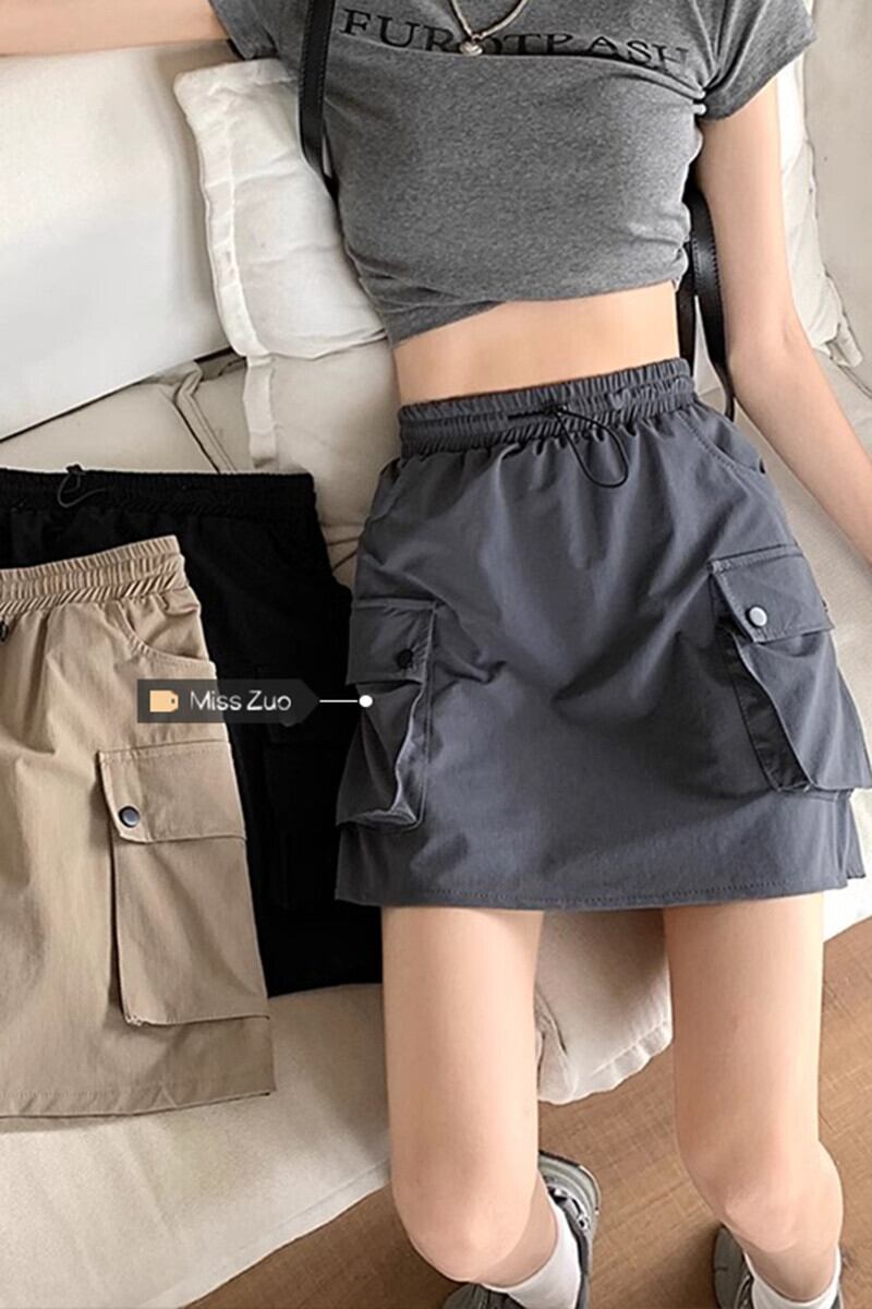 グレーツーリングスカート女性の夏のハイウエスト痩身 A ラインスカート 2023 新しいスタイルバッグヒップショートスカート ハイウェスト サマー 夏物 Aライン 8571634609583391