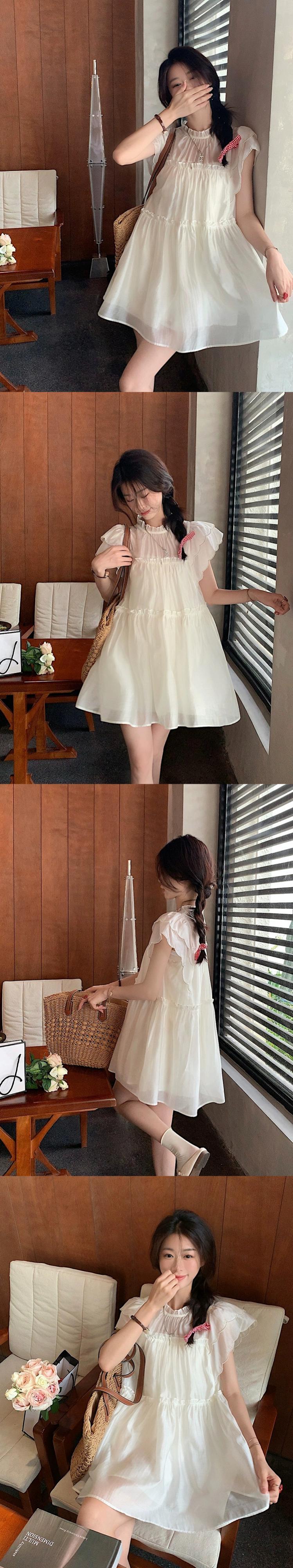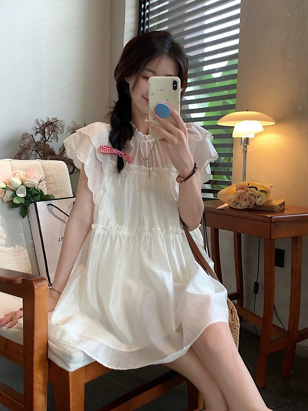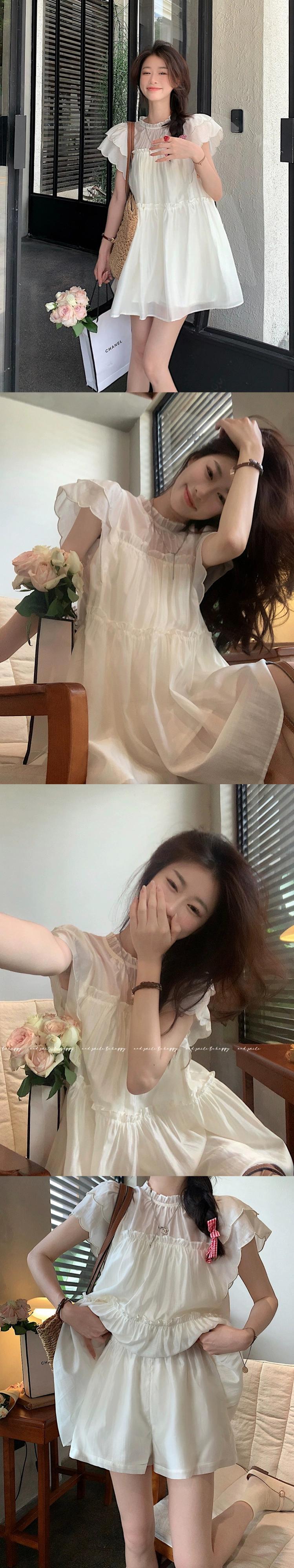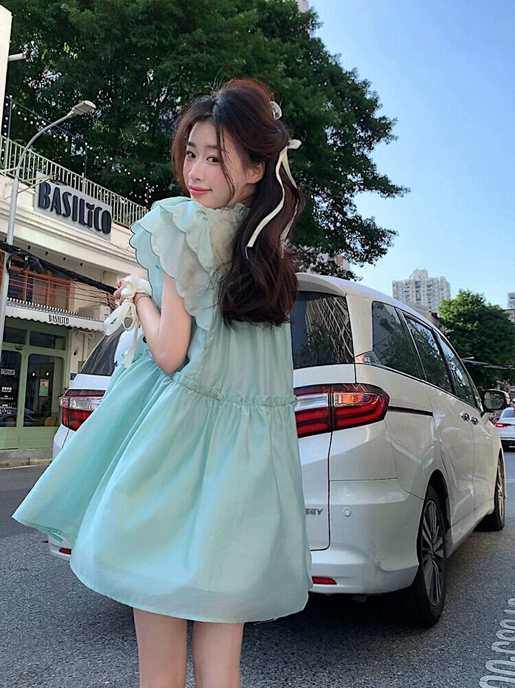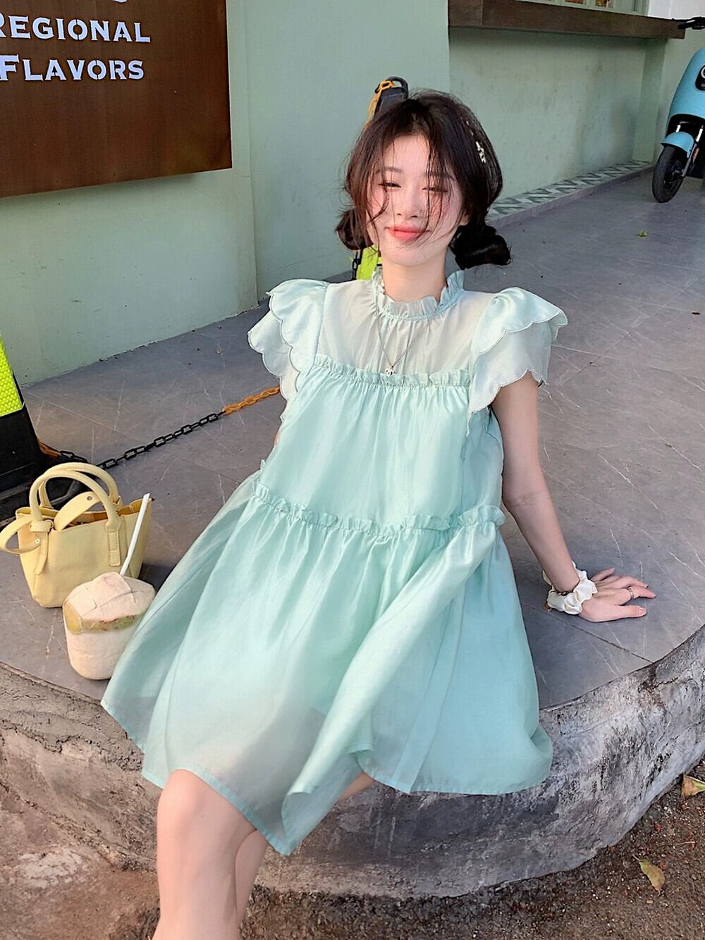 ミントグリーンのフライングスリーブドレス女性の夏甘くて優しい風初恋小さなデザインショートスカートスーツ 大人ガーリー スウィート キュート カジュアル サマー 夏物 8571617163503948