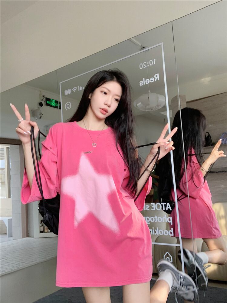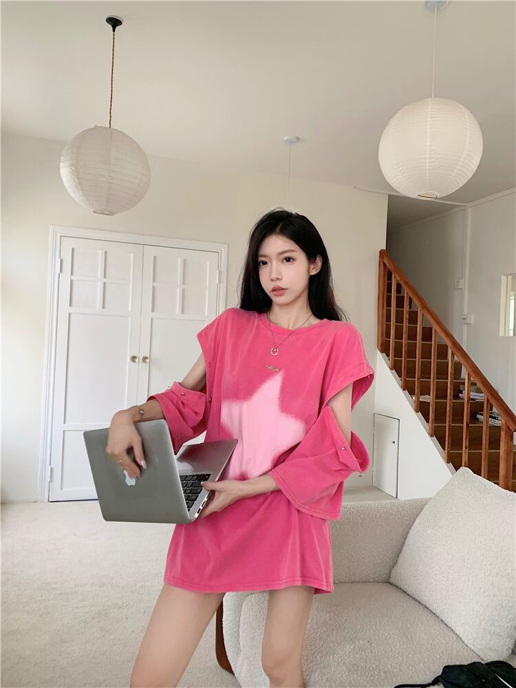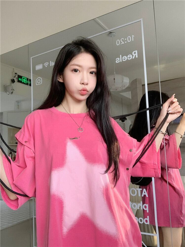黒半袖Tシャツレディース夏デザインセンスニッチアメリカンレトロBFスタイル取り外し可能袖ミドル丈トップ ブラック サマー 夏物 8571620270321217