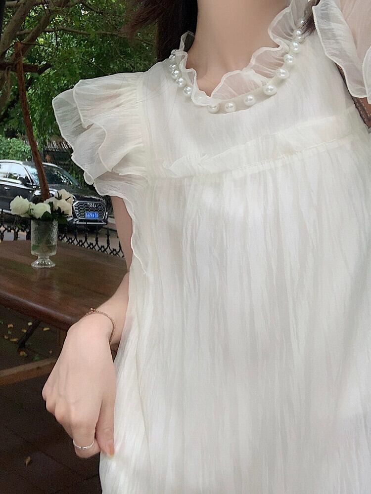 小さなフライングスリーブシフォンドレス女性の夏の甘い初恋優しい風シックな木の耳小さなスーパーフェアリースカート 大人ガーリー スウィート キュート カジュアル サマー 夏物 8571614319323739