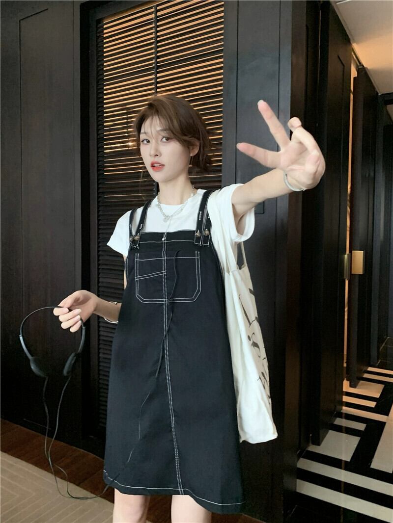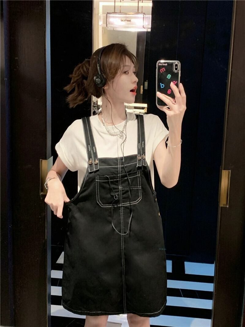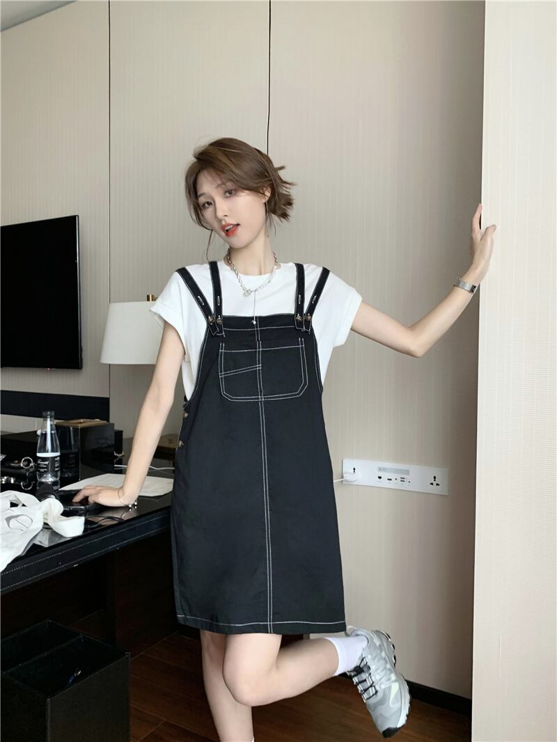オープンスレッドポケットサスペンダードレス女性の夏の新しいスタイル eign スタイル年齢低減学生小腹カバースカート サマー 夏物 8571653577285188