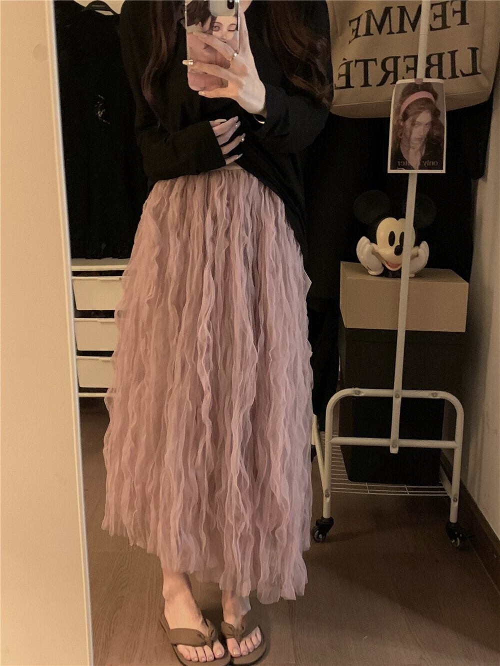 紫色のガーゼスカート プリーツスカート レディース 夏の新しい雰囲気 スーパーフェアリー ハイウエスト 薄手 ミドル丈 Aラインスカート ハイウェスト サマー 夏物 パープル 8571620931195250