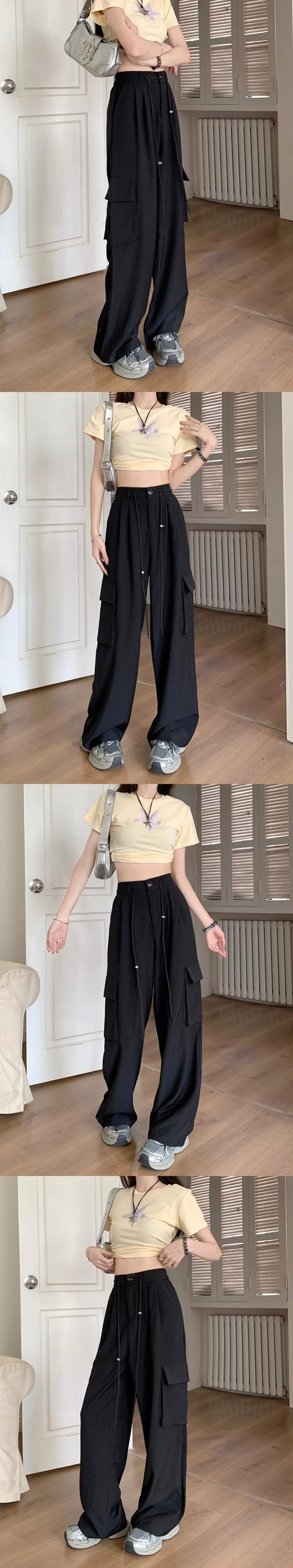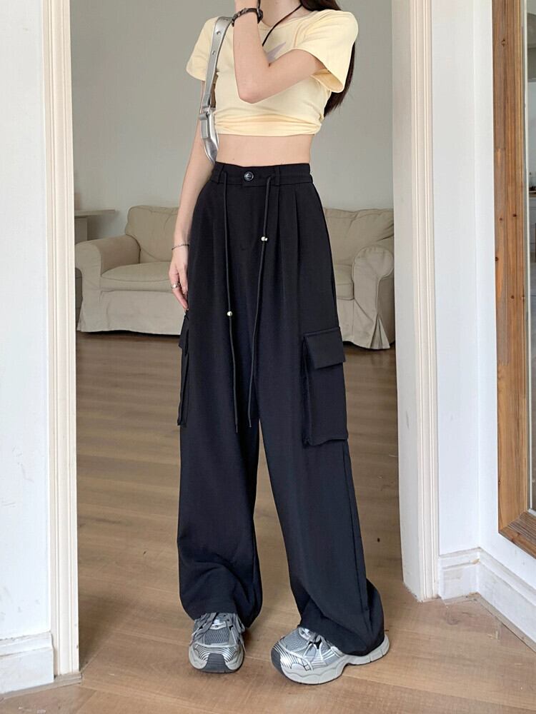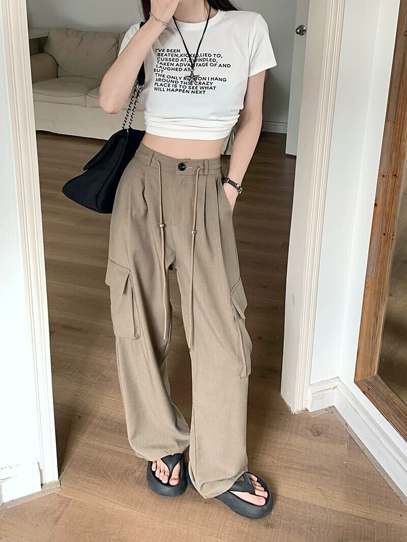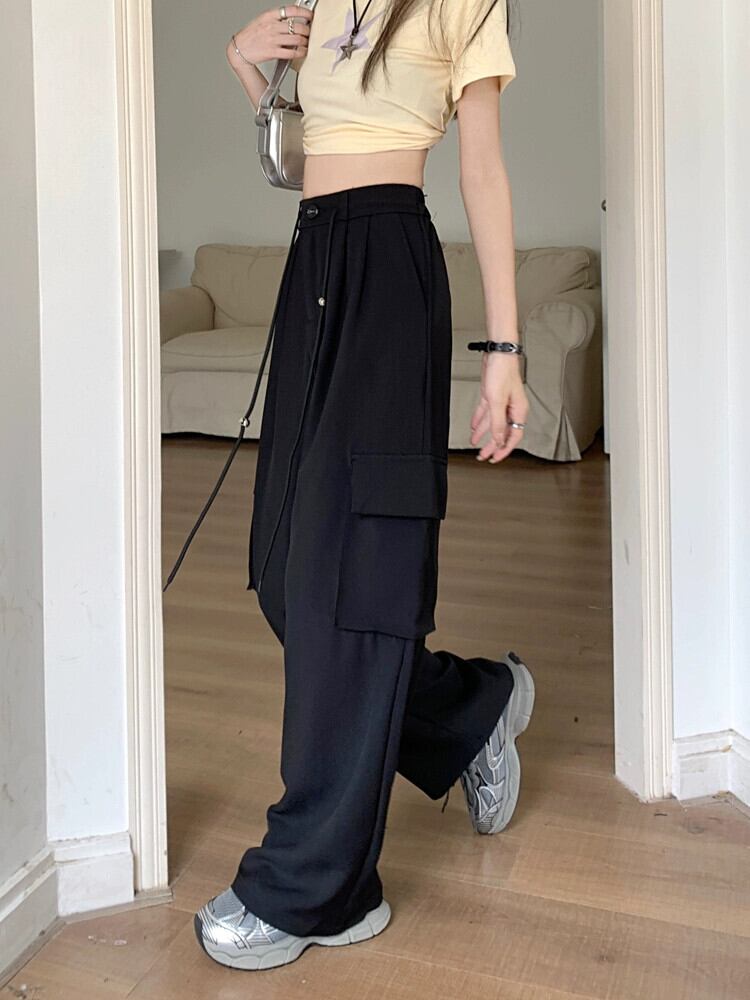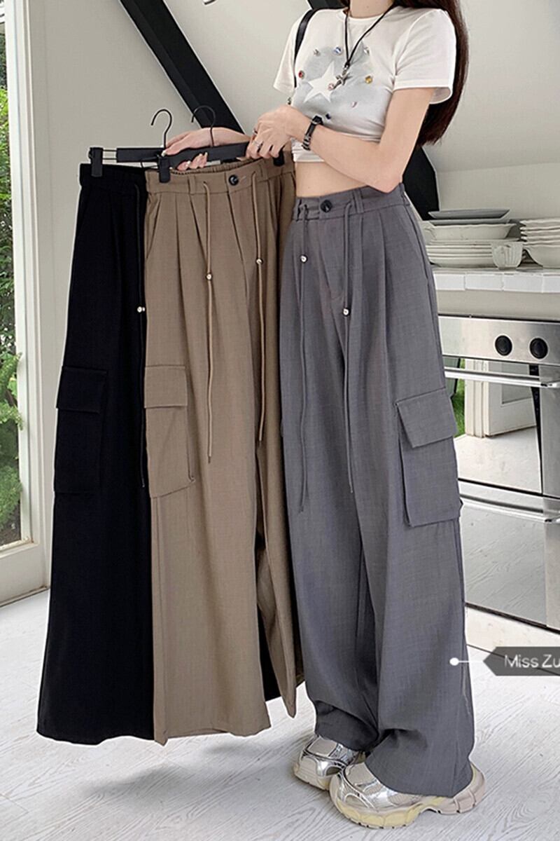 グレーオーバーオールレディース夏薄部着用フロアモップワイドレッグパンツハイウエストストレートルーズカジュアルロングパンツ ハイウェスト サマー 夏物 8571667518646307