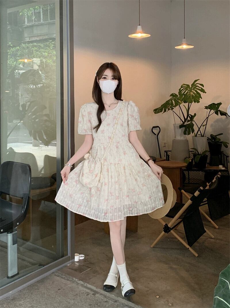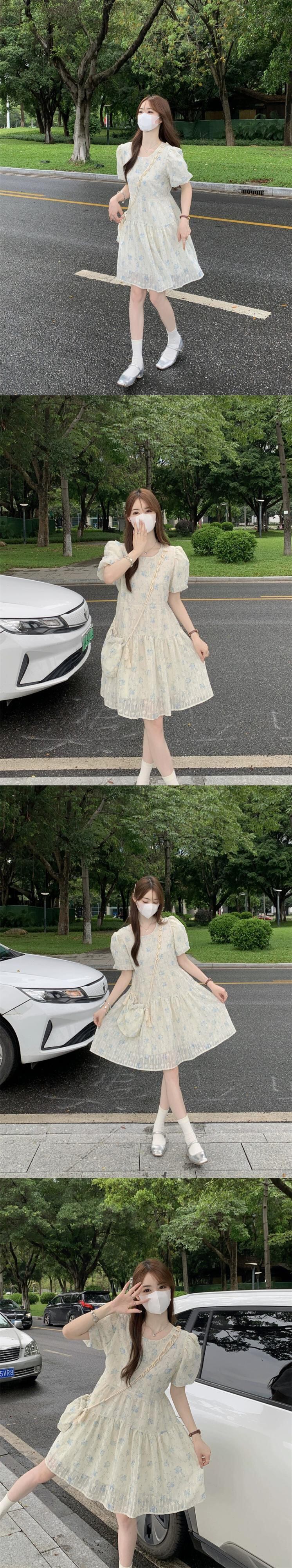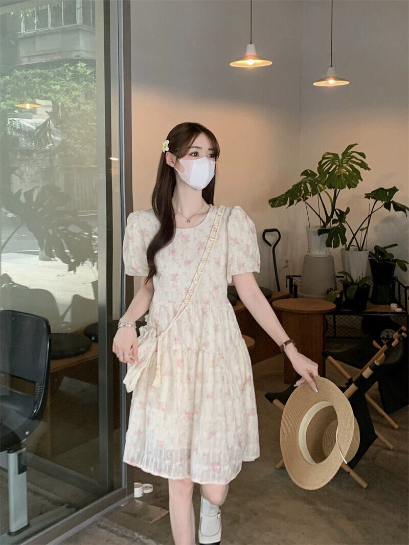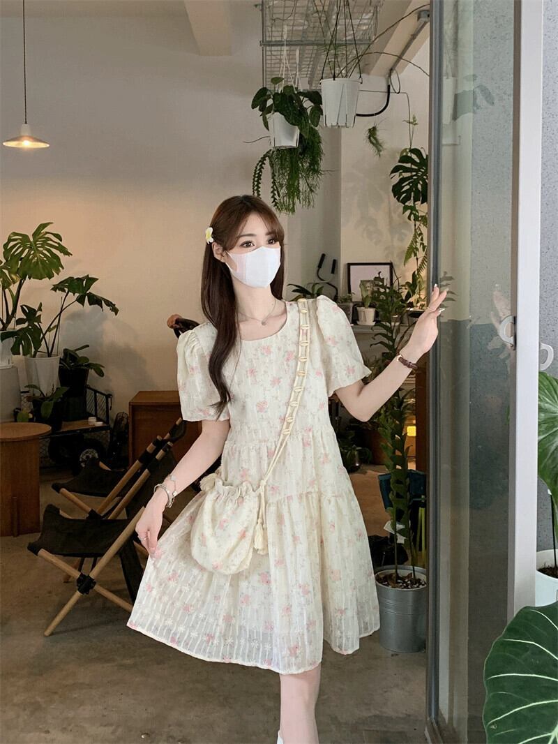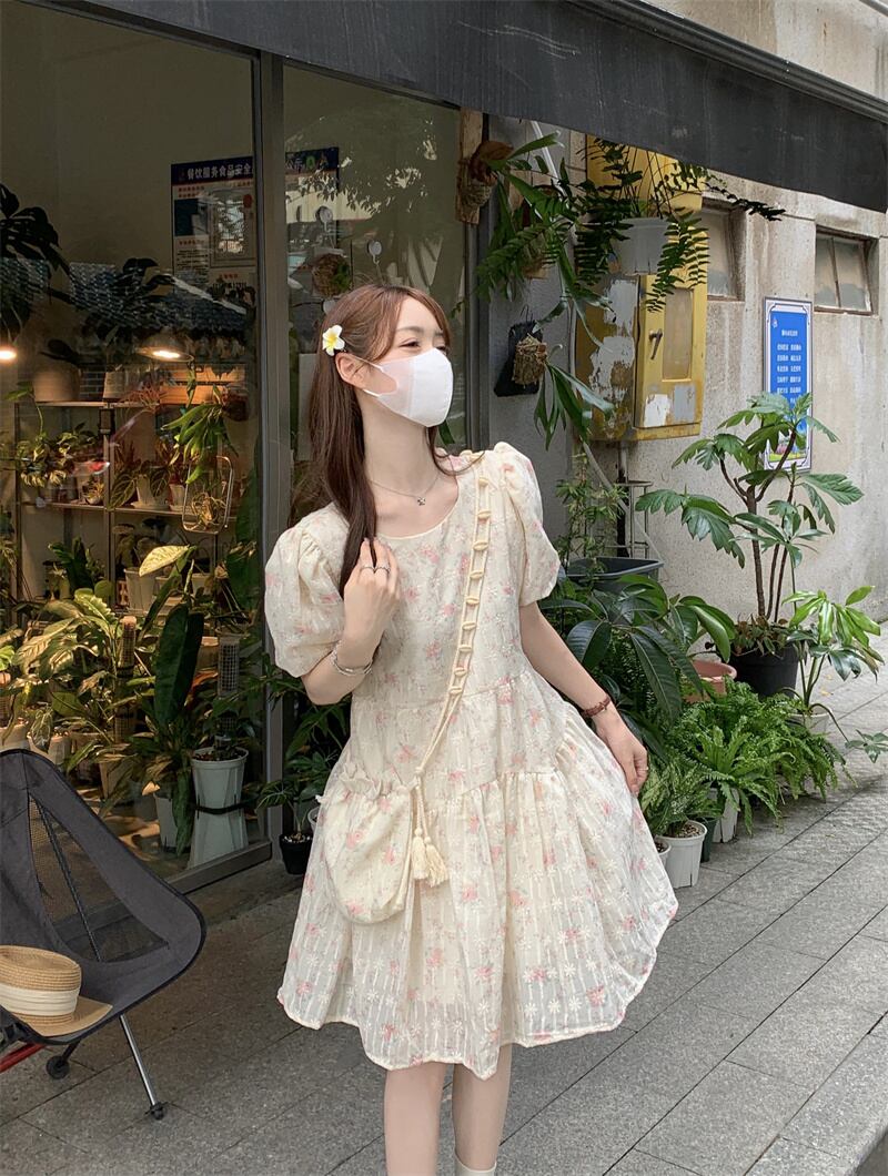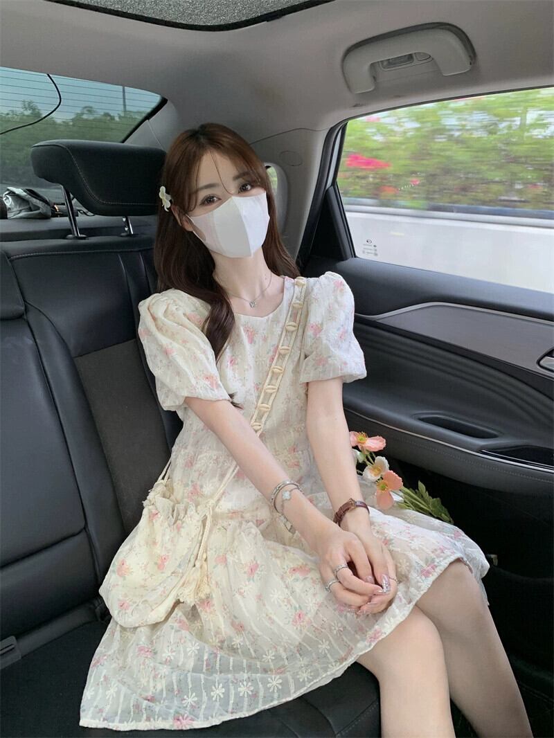 パフスリーブ花柄ドレス女性の夏の新しい小さな新鮮で甘い初恋優しい風美しい小さなスカート 大人ガーリー スウィート キュート カジュアル サマー 夏物 8571613137739281