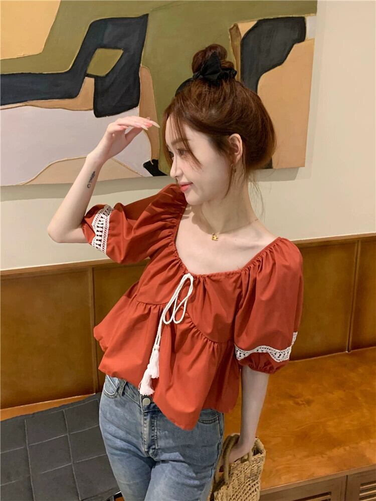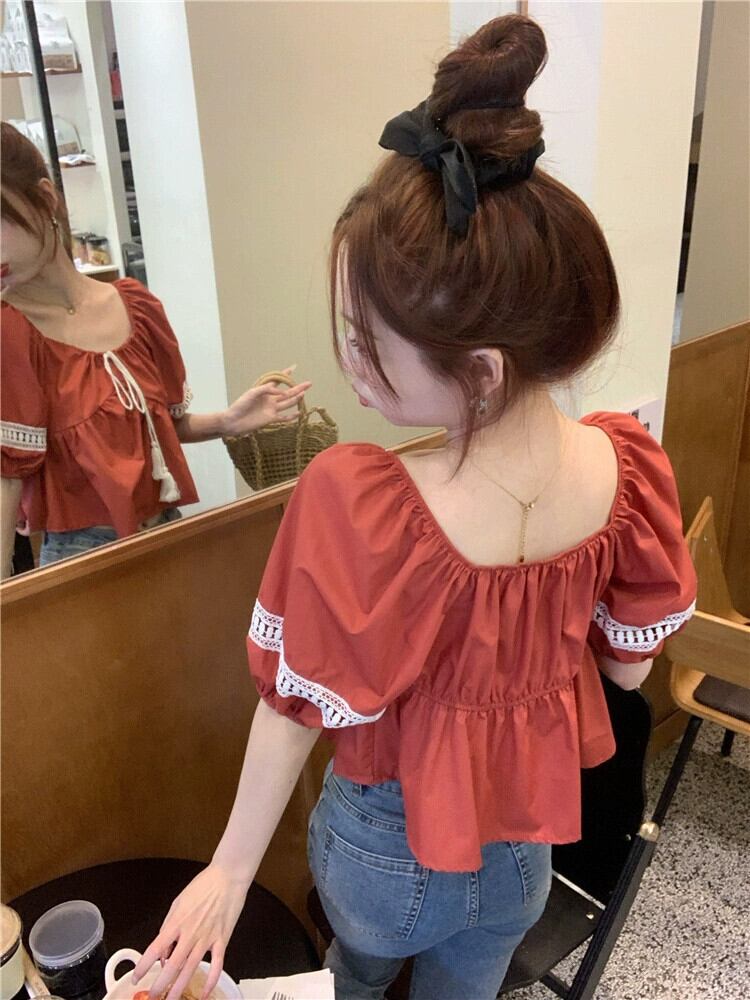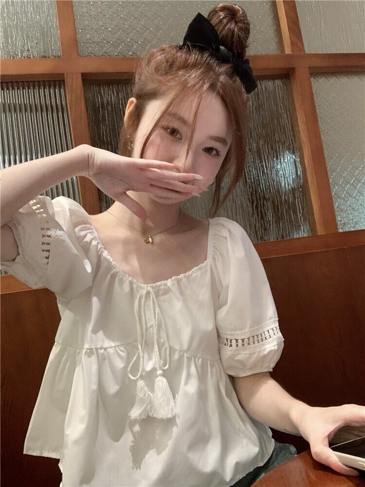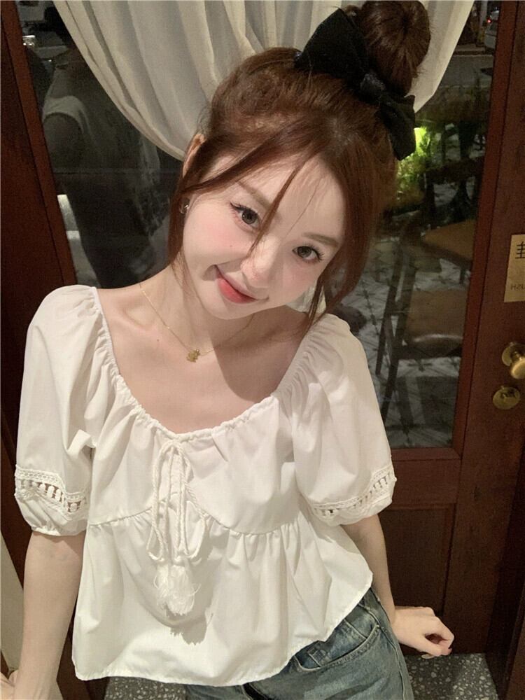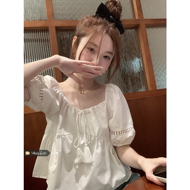 ドールシャツショートトップ女性小男性2023夏新甘くてかわいい年齢を減らす白いパフスリーブシャツ ホワイト 大人ガーリー スウィート キュート カジュアル サマー 夏物 857167106171284