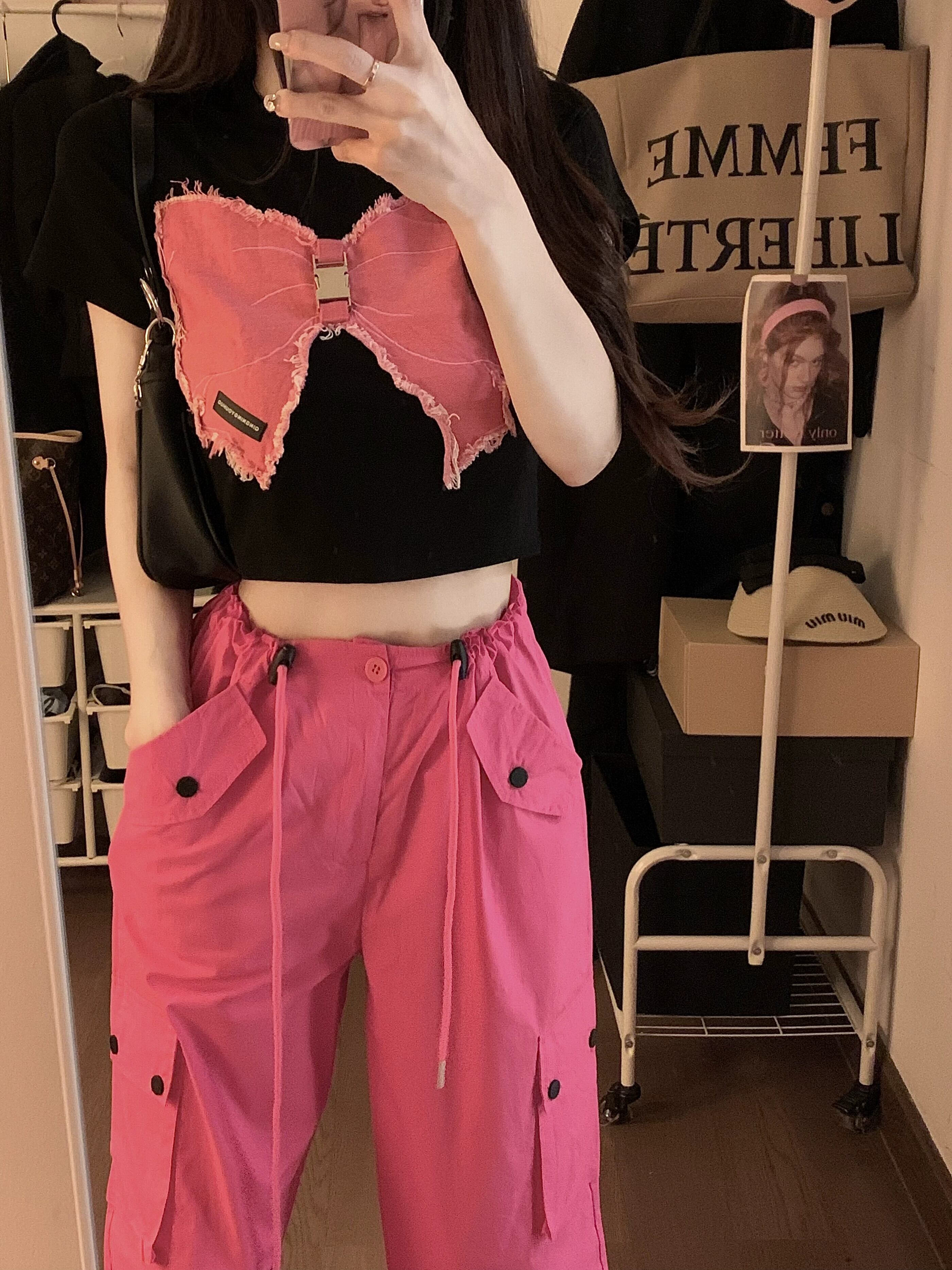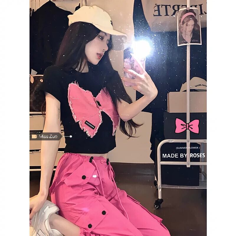 パッチリボン半袖Tシャツレディース夏ユニークなデザイン甘くてクールなスリムフィットショルダーショートトップ 大人ガーリー スウィート キュート カジュアル サマー 夏物 8571612735646061