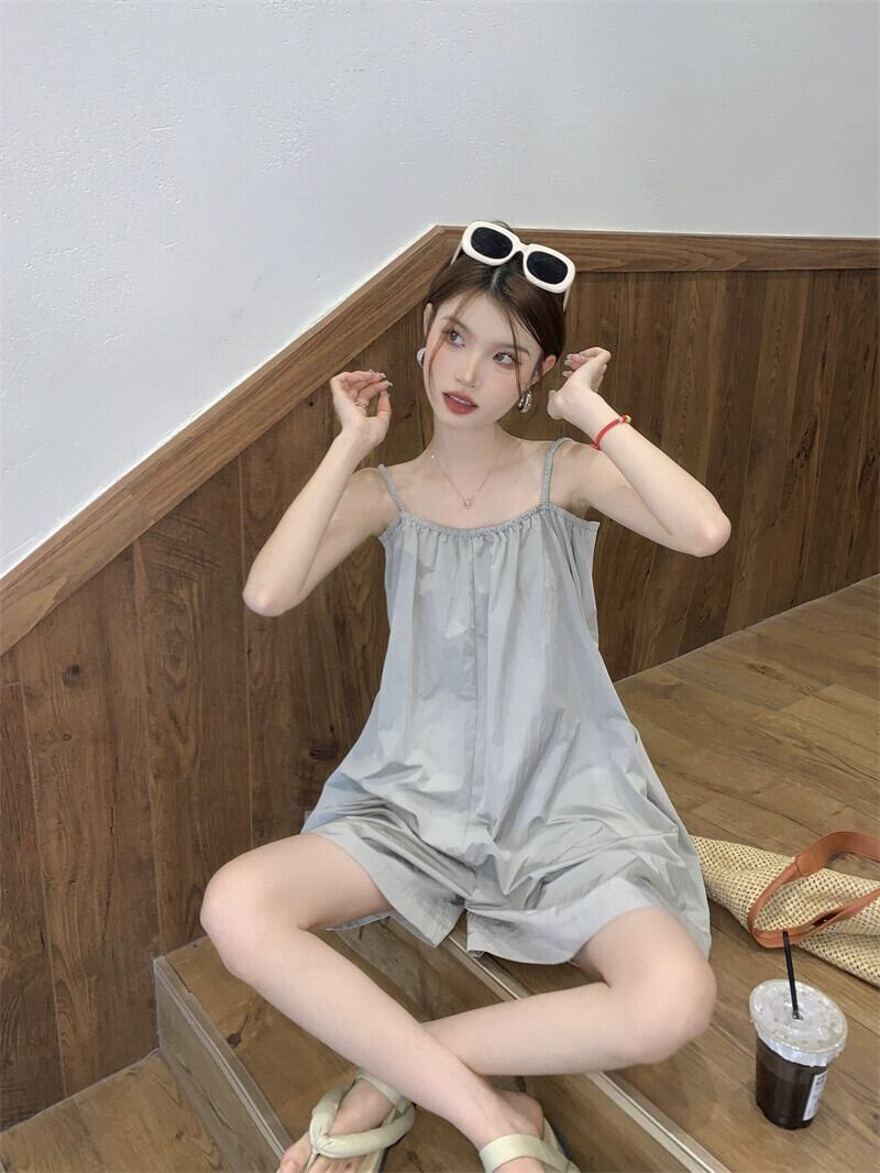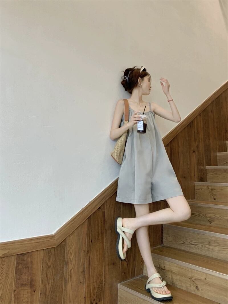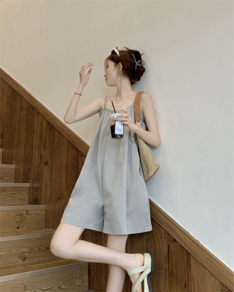 サスペンダージャンプスーツの女性の夏薄いセクション小さなジャンプスーツ 2023 新しい気質ルーズカジュアルワイドレッグパンツ サマー 夏物 8571628815858050